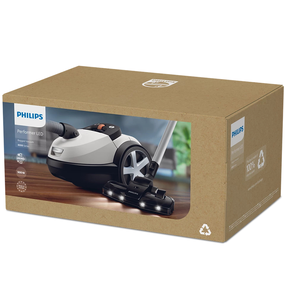 جاروبرقی کیسه ای • قدرت ورودی 900 وات • فیلتر HEPA • شعاع عملکرد 12 متر • سطح نویز 77 دسی بل • نازل کف نازل TriActive+LED • برس یکپارچه • نازل شکاف • نازل مبلمان • برس فرش مینی توربو • 4× کیسه S
