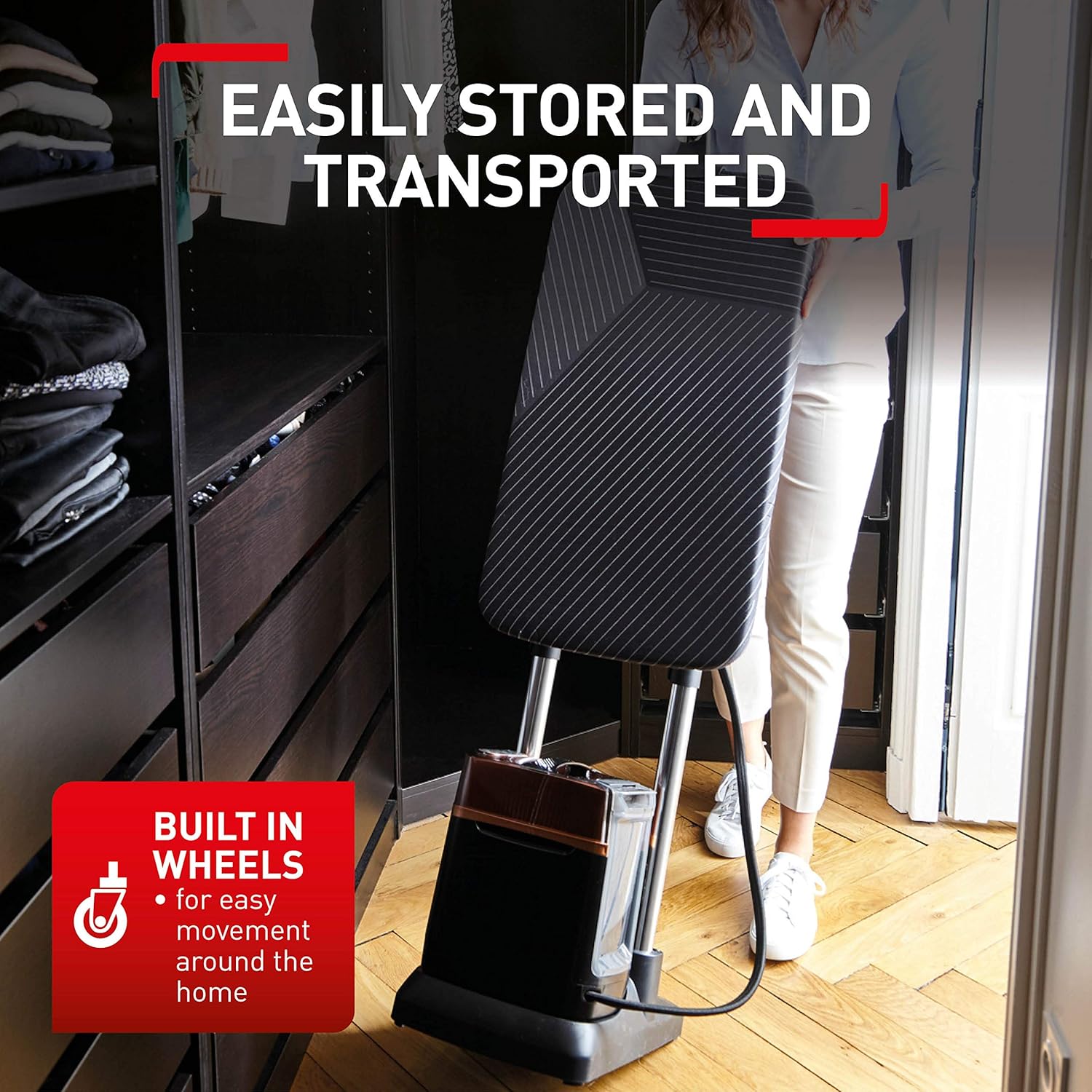 پایه قابل جابجایی این اتو بخارگر با انعطافپذیری و راحتی کامل، این امکان را مهیا میکند تا در هر زمان و هر فضا از ساختمان با تغییر ارتفاع پایه، استفاده از دستگاه روی پردهها، مبلمان و سایر پارچهها میسر شود.