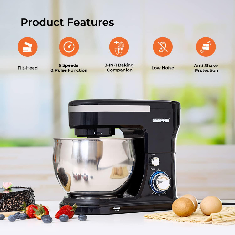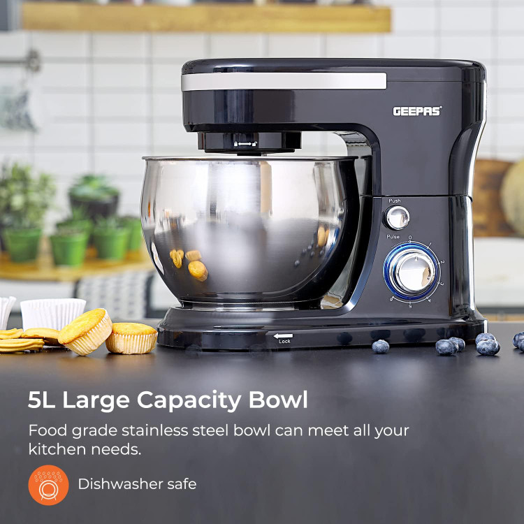 میکسر پایه غذا Geepas 5L | کاسه مخلوط کن از جنس استنلس استیل 1000 وات