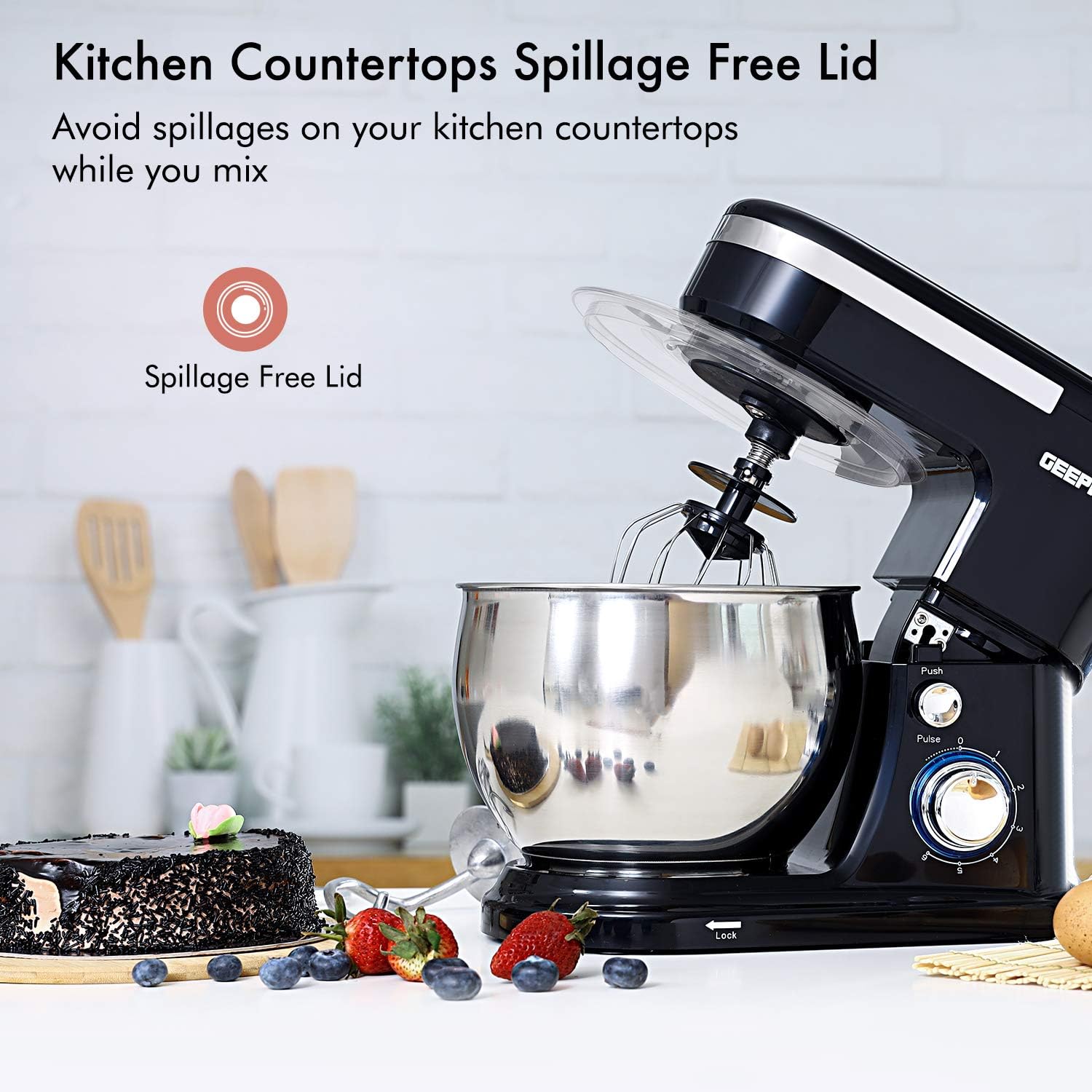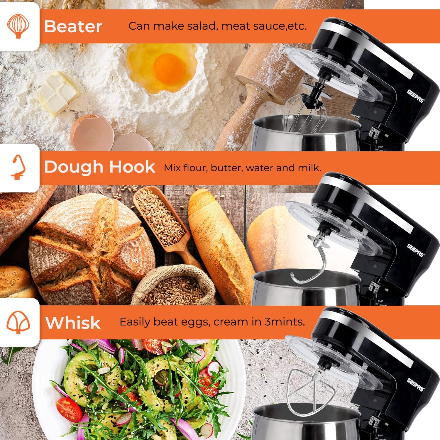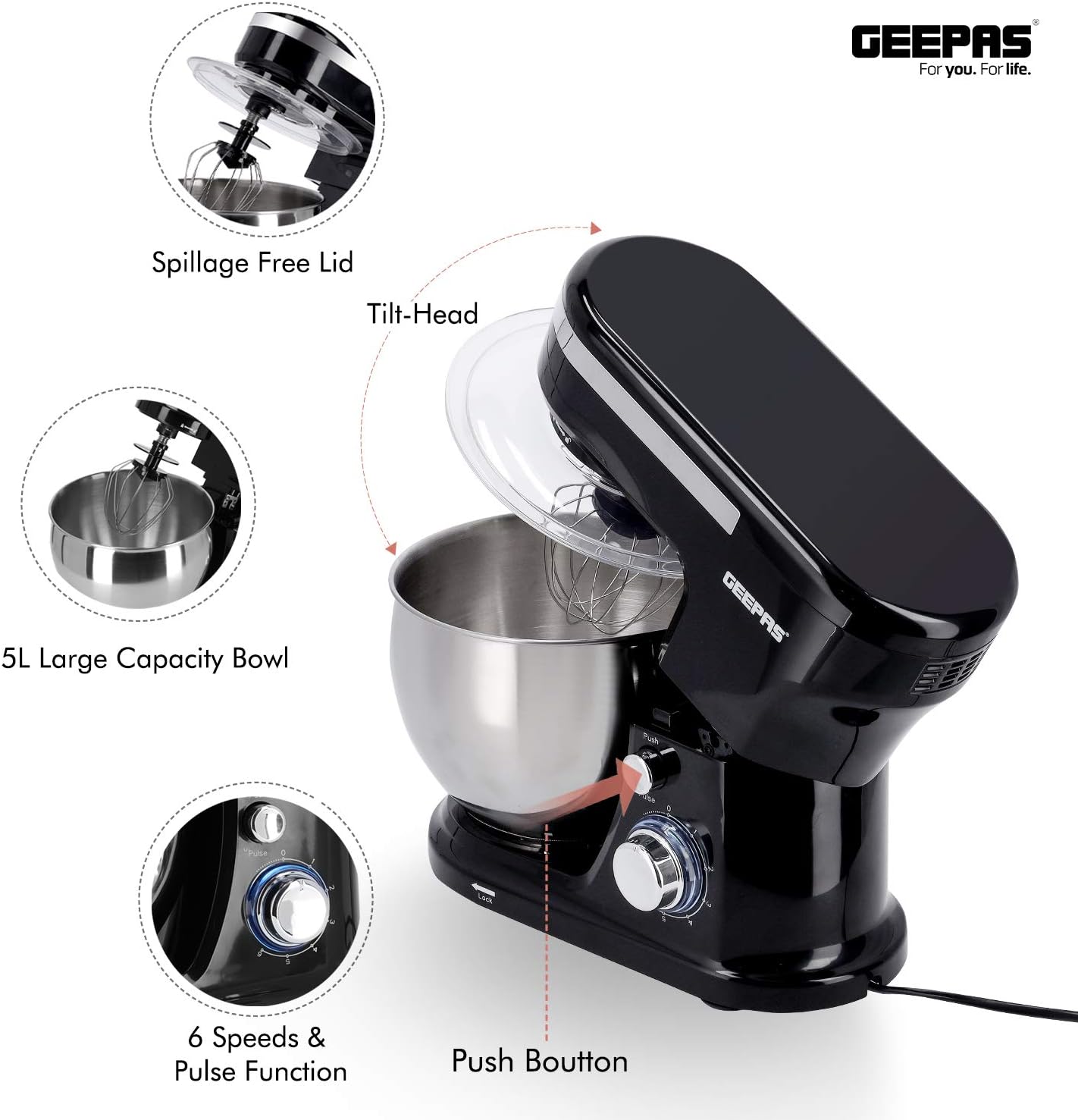 میکسر پایه غذا Geepas 5L | کاسه مخلوط کن از جنس استنلس استیل 1000 وات