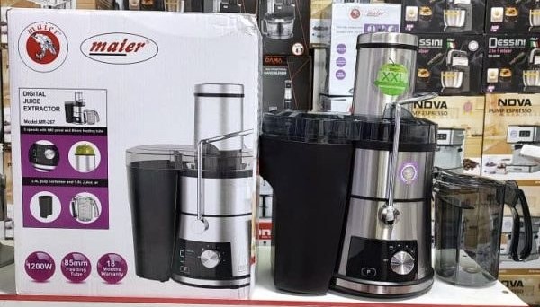 این آبمیوه گیری از توان 1200وات برخوردار است.یکی از ویژگی های خوب آن این است که همه تجهیزات و وسایل این آبمیوه گیر ازهم جدا میشوند و افراد میتوانند آن ها را از هم جدا کرده و هرکدام را جداگانه و با دقت بالایی شستشو دهند. پایه این آبمیوه گیر بدون لرزش و لغزش میباشد و در حین کار با آن هیچ لغزش و لرزشی ایجاد نمیشود.با این آبمیوه گیری شما میتوانید هر نوع میوه چه از نوع کوچک و چه بزرگ را آب گیری کنید.