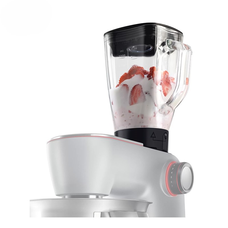دستگاه BOSCH MUM9YX5S12 یکی از انواع ماشین آشپزخانه بوش به شمار میآید که با برخورداری از ظاهری زیبا و عملکردی قدرتمند قادر است بخش گستردهای از نیازهای روزمره شما را مبنی بر تهیه مواد غذایی متنوع رفع کند. طراحی جذاب این ماشین آشپزخانه به لطف برخورداری از متریال ساختی بادوام از فلز دایکاست، کنترلر چرخشی و نور LED زیبای بهکاررفته در حاشیه آن علاوه بر تضمین ماندگاری دستگاه در استفاده طولانیمدت، امکان ایجاد تناسب با انواع دکوراسیونهای مدرن را بهآسانی فراهم کرده است. با مقایسه قیمت ماشین آشپزخانه بوش مدل MUM9YX5S12 با هریک از اقلام بهصورت مجزا پی خواهید برد که باتوجهبه میزان عملکرد، خرید ماشین آشپزخانه بوش کاملاً مقرونبهصرفه خواهد بود. توان مصرفی بسیار بالا و 1500 واتی این دستگاه قادر است انجام فرایندها را برای دستیابی به بهترین نتیجه ممکن همراه کند. همچنین باوجود امکان تنظیمات سرعت در 7 سطح انجام فرایند بر روی مواد غذایی بسته به میزان سختی مواد غذایی و نوع فرایند موردنظر قابلکنترل است. علاوه بر این تعبیه عملکرد Pulse با بهرهگیری از حداکثر توان موتور آماده اعمال فرایند بر روی سختترین مواد غذایی خواهد بود. عملکردهای متنوع دستگاه از طریق اتصال اقلام جانبی تعبیه شده برای آن صورت میپذیرد؛ 1 عدد همزن بالونی، 1 عدد ابزار امولسیون ساز، 1 عدد ابزار قلاب خمیرزن و در نهایت 1 عدد پارچ مخلوطکن به ظرفیت 1.5 لیتر از اقلام مورد پیوست ماشین آشپرخانه MUM9YX5S12 بوش محسوب میشوند. کاسه غذاساز استیل این دستگاه با حجم چشمگیر 5.5 لیتری و امکان انجام فرایند بر روی 3.5 کیلوگرم مخلوط خمیر کیک، از این غذاساز گزینهای بسیار ایدهآل در جهت تهیه انواع کیک و خمیر برای مهمانی و جشنهای تولد ساخته است. حرکت سری پیوستهای خمیرزن و همزن با برخورداری از سنسورهای تشخیص میزان سختی مواد به طور هوشمند، عملیات اختلاط و ورز دادن را به بهترین شکل ممکن صورت میدهند. علاوه بر این نوع چرخش و دوران سری دستگاه موسوم به 3D PlanetaryMixing سبب شده سری مربوط به خمیرزن و همزن تمام فضای مواد غذایی دربرگرفته و از ایجاد توده در ترکیب غذایی مدنظر جلوگیری شود. گفتنی است تفکیک و جایگزینی ابزار به لطف وجود سیستم EasyArmLift با فشردن اهرم مربوط به تغییر زاویه گلویی و سپس جداسازی اقلام پیوستی بهآسانی میسر است. همچنین وجود درپوش شفاف با قابلیت قفل ایمنی علاوه بر امکان نظارت مداوم بر عملکرد دستگاه در حین انجام فرایند، از پاشیدن مواد غذایی به خارج از فضای کاسه جلوگیری میکند. گفتنی است بخش بالایی دستگاه نیز با جداسازی بخش مربوط بدنه علاوه بر اتصال مخلوطکن امکان اتصال کاسه مربوط به غذاساز را نیز دارد. پارچ 1.5 لیتری این دستگاه به لطف برخورداری از شیشه ThermoSafe و قابلیت مقاومت در برابر دمای سردوگرم، تهیه انواع مواد غذایی همچون سوپهای داغ و یا نوشیدنیهای سرد را امکانپذیر کرده است. اما ویژگی انحصاری ماشین آشپرخانه بوش مدل MUM9YX5S12 وجود یک ترازو بهمنظور وزن کردن مواد غذایی داخل کاسه غذا است. این امر اعمال دقت فرایند آشپزی را برای شما به آسانترین شکل ممکن فراهم کرده و شما را در استفاده از اقلام مجزا و همچنین مصرف تعداد زیادی از ظروف در جهت انجام مواد غذایی بینیاز خواهد کرد. اطلاعات مربوط به وزن به انضمام تنظیمات زمان یکپارچه بر روی نمایشگر دیجیتالی جذاب با رابط کاربری آسان قابلمشاهده خواهد بود. تمام بخشهای پلاستیکی مرتبط با مواد غذایی در این ماشین آشپزخانه فاقد ماده شیمیایی مضر BPA بوده بنابراین ترکیبات تهیه شده دارای حداکثر سلامت و کیفیت ممکن است. در کنار طراحی زیبای این غذاساز که متناسب با چیدمان هر نوع دکوراسیون آشپزخانه است، به لطف وجود پایههای ضدلغزش، ایمنی استفاده از دستگاه در حین انجام فرایند نیز تضمین میشود. علاوه بر این تعبیه فیوز حرارتی در مواقع ایجاد گرمای بیش از اندازه، عملکرد دستگاه را متوقف خواهد کرد. تفکیک قطعات و امکان شستشوی آسان آنها پس از هر بار انجام فرایند دیگر امکان مهم ما