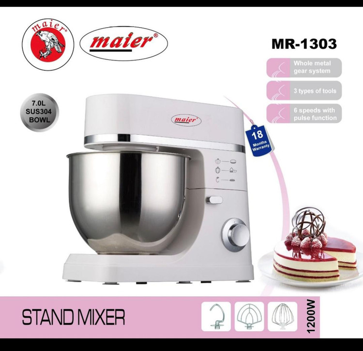 همزن کاسه دار مایر مدل 1303 همزنی تمام حرفهای میباشد که تمامی نیازهای شما چه در خانه چه در کارگاه برطرف مینماید. این محصول با داشتن سه نوع پره متفاوت امکان استفاده برای مصارف مختلف را فراهم میکند. این همزن با طراحی بسیار شیک و زیبا، قابلیت تنظیم سرعت در شش سطح مختلف از کم تا زیاد و همچنین عملکرد پالس یک انتخاب ایدهآل به حساب میآید تا شما را از هر همزن دیگری بی نیاز کند. این همزن دارای قابلیت پالس لحظە ای نیز می باشد و جنس کاسه و پرهها نیز از استیل با دوام و ضد زنگ می باشد تا این دستگاه به مرور زمان کیفیت خود را از دست ندهد و طول عمر بیشتری داشته باشد. در هر کارتن از این محصول، 2 دستگاه همزن MR-1303 وجود دارد.