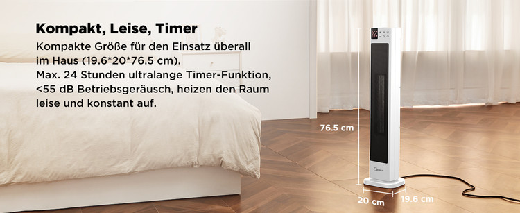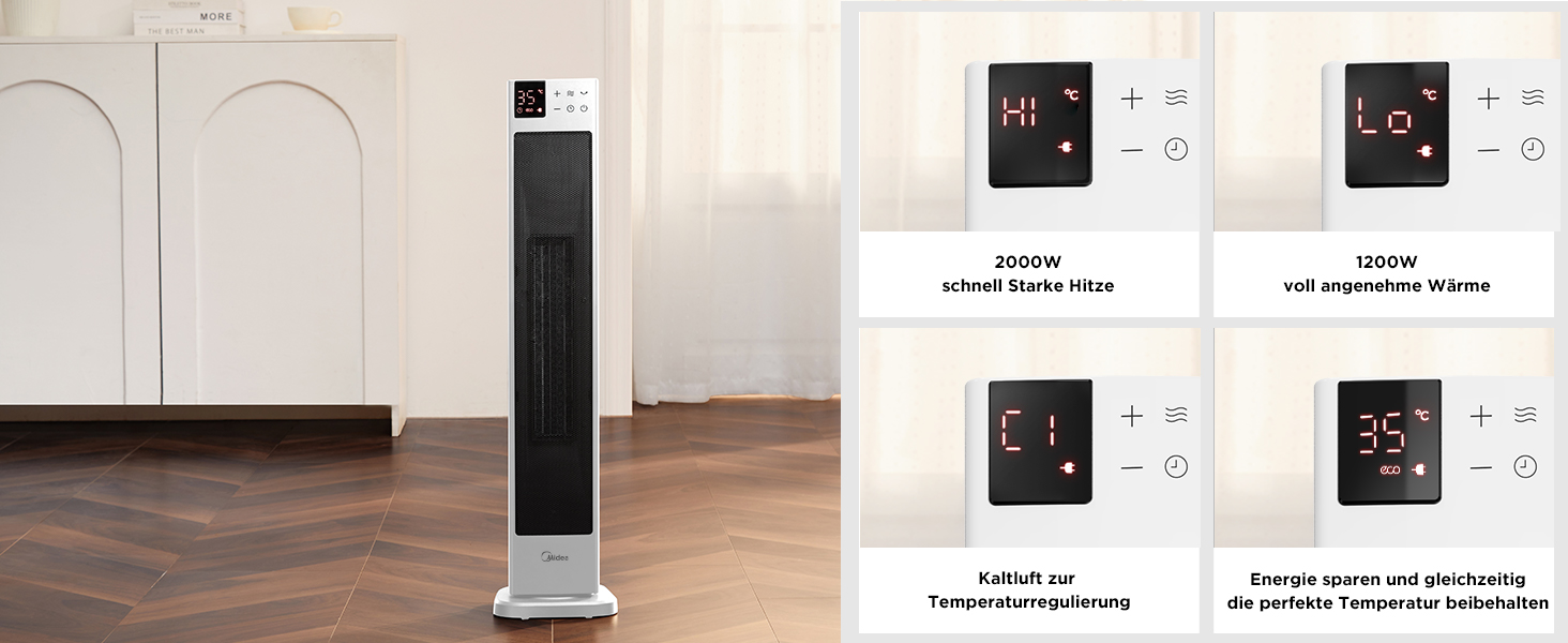 گرمایش سریع و دمای ثابت: با فناوری گرمایش سرامیکی قابل اعتماد و موثر، این بخاری قدرتمند 2000 واتی به سرعت تا 35 درجه سانتیگراد در 3 ثانیه گرم می شود و دمای یکنواخت و دلپذیر را تضمین می کند. فن های دوبل DC با سطح PTC بزرگتر، با 26٪ دهانه هوای گرم بیشتر، می توانید به سرعت و به طور کامل تغییر از سرد به گرم را احساس کنید.