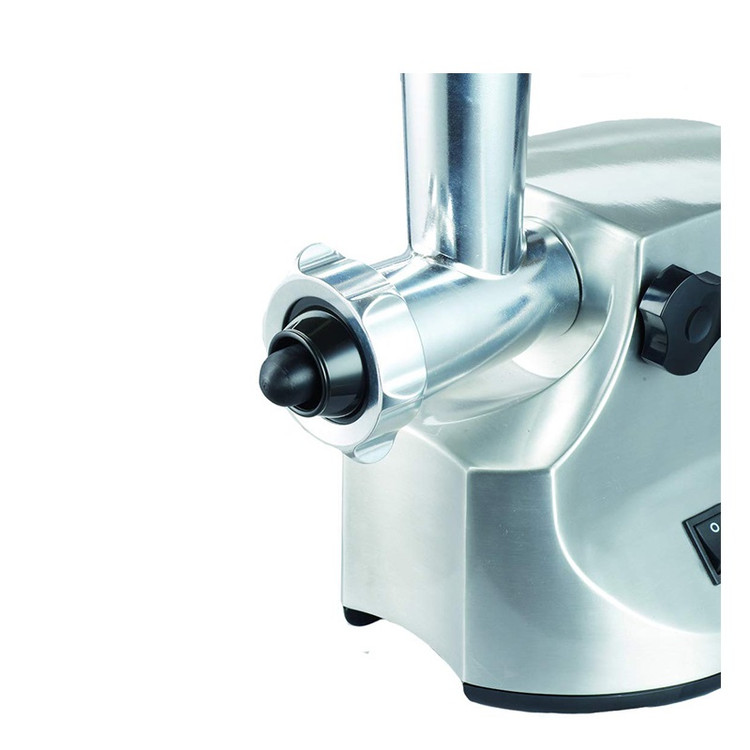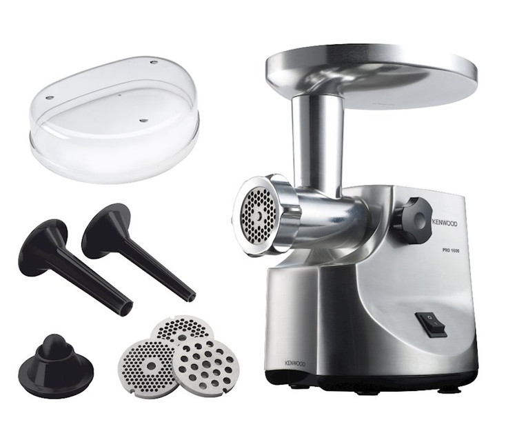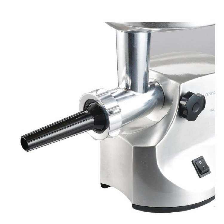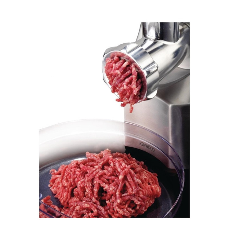 چرخ گوشت کنوود مدل KENWOOD MG510 دستگاهی با طراحی بدنهای مستحکم از فلز پرداخت شده و عملکردی قدرتمند و چندکاره یک گزینه ایدهآل برای آشپزخانه مدرن شما محسوب میشود. این دستگاه با توان بازدارنده 1600 وات و توان مصرفی 450 وات، به کمک شبکهها و اقلام جانبی متنوع قادر است فرایند چرخ کردن سختترین قسمتهای گوشت را برای دستیابی به بهترین نتایج ممکن صورت دهد. میزان خروجی 2 کیلوگرمی در دقیقه، این امکان را مهیا کرده است که تنها در مدت زمانی کوتاه حجم قابلتوجهی از گوشت را چرخ کنید. عملکردهای چرخ گوشت MG510 کنوود از طریق 3 شبکه متفاوت جهت چرخ کردن گوشت در ابعاد ریز، متوسط و درشت، 2 عدد سری سوسیس ساز با ابعاد متفاوت و 1 عدد ابزار ساخت کبه، انجام میپذیرد. گفتنی است جنس قطعات دستگاه شامل لوله ناودانی، شبکهها و تیغهها از فلز استیل بوده که علاوه بر برخورداری از کیفیت بالا، امکان شستشو در ماشین ظرفشویی را نیز خواهد داشت. وجود کنترلر چرخشی جهت قفل لوله ناودانی این چرخ گوشت، ایمنی انجام فرایند توسط دستگاه را متضمن میشود. در هنگام انسداد گلویی و گیر کردن تکه گوشت در دستگاه با بهرهگیری از دکمه عملکرد معکوس قادر به بازگشت مواد به خارج از چرخ گوشت و از سرگیری مجدد فرایند خواهید بود. توجه داشته باشید هیچگاه دست خود را برای هدایت گوشت به داخل ورودی دخیل نکنید و همواره از اهرم هدایتکننده تعبیه شده برای این منظور استفاده کنید.