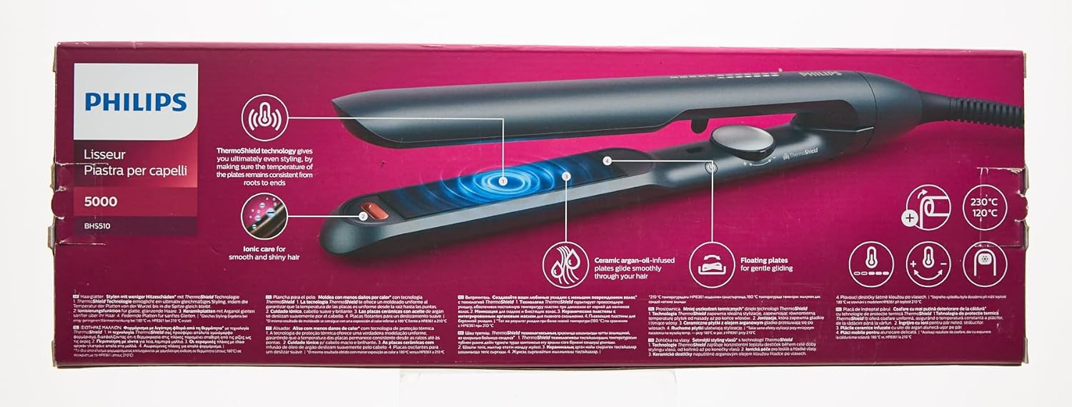 قابل تنظیم ۱۲ لول برای انواع تایپ مو - صفهات سرامیک همراه با ارگان - صفهات شناور - سیم گردان - تکنولوژی جدید فیلیپس ThermaShield Technology شما ب راحتی میتونید روی مو اتو رو نگه دارید و مو را استایل دلخواه بدید بدون انکه مو اسیب ببیند - نوک عایق - کیف