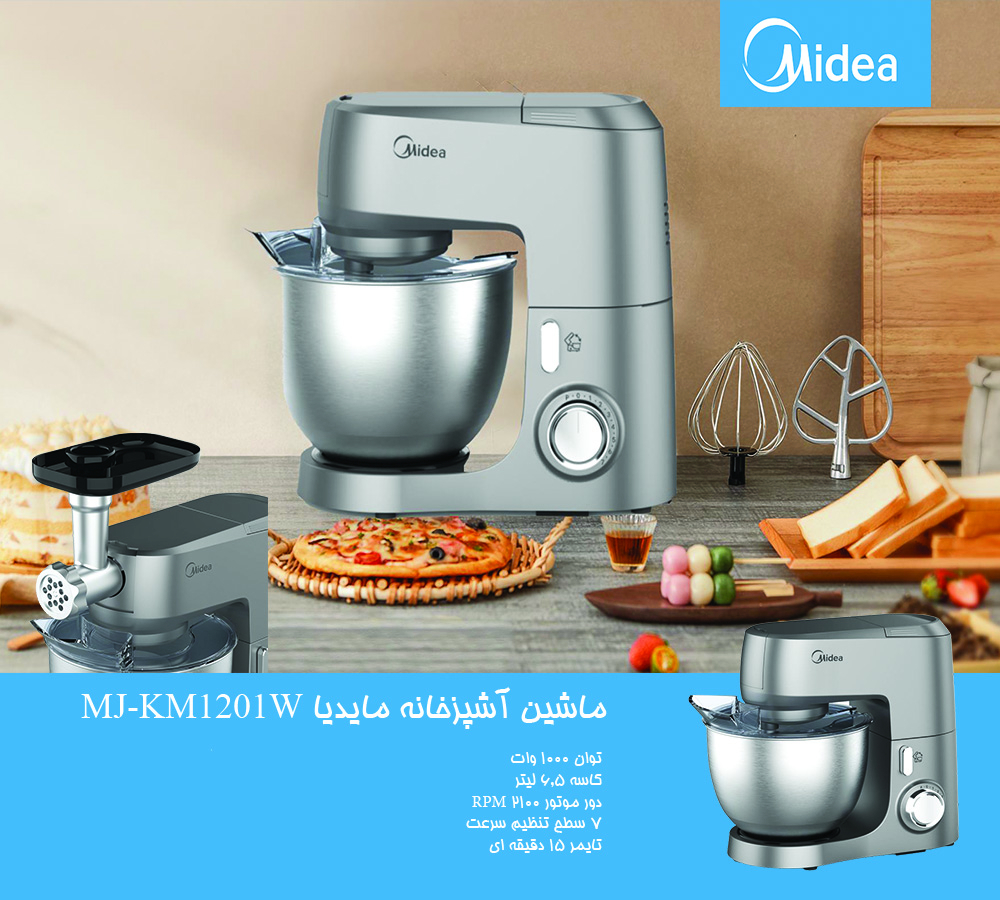 توان مصرفی(همزن)1000 واتظرفیت کاسه(همزن)6.5 لیترتعداد تنظیمات سرعت7تنظیمات سرعت(همزن)داردچرخ گوشتداردمخلوط کنداردتایمر15 دقیقه ای