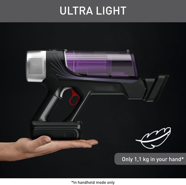 | ویژگی های خاص | فناوری Cyclonic، فناوری FLEX، 3 حالت کار، تخلیه و تمیز کردن آسان ظرف گرد و غبار، تنظیم خودکار قدرت مکش، روشنایی LED، ماشه تقویت کننده، باتری قابل جابجایی، کنترل پنل دیجیتال، هشدار تمیز کردن فیلتر، فیلتراسیون 99.9٪، قدرت مکش 100 AW |