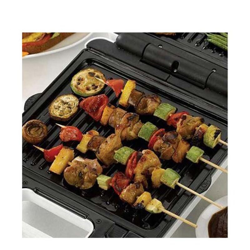 یک محصول جمع و جور که توانایی پخت بسیاری از غذاها را دارد. این محصول توانایی تبدیل شدن به گریل را دارد و برخورداری از صفحه گریل یکی از ویژگیهای این دستگاه است. بهکارگیری نشانگر نئون برای اعلام آماده به کار بودن و پخت غذا به شما هشدار میدهد تا برای قرار دادن مواد غذایی روی سطح عجله نکنید. طراحی ارگونومیک جابجایی هرچه آسانتر را منجر میشود. طراحی این دستگاه بهگونهای است که همانند کیف دستی میتوانید آن را جابجا کنید. درب محصول به صورت ۱۸۰ درجه باز میشود تا از دوسطح گریل به صورت جداگانه استفاده کنید و روی هر سطح ماده غذایی مورد علاقه خود را درست کنید.