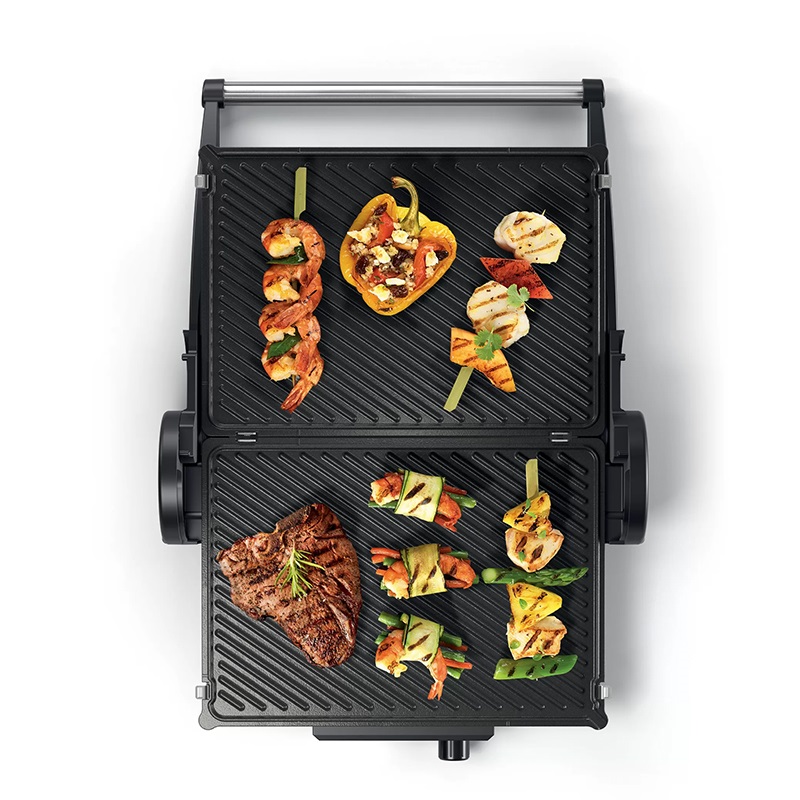 غذاهای سالم و خوشمزه در کوتاهترین زمان ممکن بهوسیله گریل بوش برای شما آماده میشود. در تولید مدل TCG4104 از یک لولای متحرک استفاده شده است. این لولای متحرک به شما امکان تغییر حالت صفحههای گریل و استفادههای گوناگون از این دستگاه را میدهد و حجیمترین غذاها را به طور یکنواخت آماده میکند. حالتهای مختلف آشپزی نظیر باز بودن صفحهها و باربیکیو کردن بر روی سطح، بسته بودن سطوح برای تماس نزدیک دو سطح گریل با مواد غذایی و همچنین به عنوان یک اجاق معمولی برای درست کردن غذاهای خوشمزه از قابلیتهای این محصول به شمار میآید. قابلیت گرم نگهدارنده مواد غذایی یکی دیگر از ویژگیهای این دستگاه است که بعد از اتمام فرآیند گریل غذای شما را گرم و آماده سرو کردن نگه میدارد.