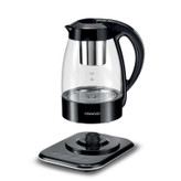 چای ساز کنوود مدل TMG70 با برخورداری از طراحی بسیار زیبا، کاربری ساده و ارگونومیک و سطح کیفی بالا به شیوهای قوی پاسخگوی نیازهای شما مبنی بر تهیه آب جوش و یا حتی نوشیدنیهایی همچون چای خواهد بود. لزوم دسترسی به آب جوش برای مصارف پر تعداد روزمره، وجود دستگاهی برای تهیه سریع آن را در هر محیط اعم از خانه و محل کار ایجاب میکند. این کتری برقی با بهرهگیری از توان مصرفی 2200 وات در کنار سیستم گرمایش المنت حرارتی قادر است عملیات جوش آوری آب را در اسرع زمان و به بهترین فرم ممکن به انجام برساند. طراحی ساخت این کتری در بخش عمده از متریال شیشه بوده که در قسمتهایی از پایه و محل ورودی آب با پلاستیک پوشانده شده است. دستگیره پلاستیکی مقاوم در برابر حرارت نیز جابجایی و نگهداری کتری برقی را به ایمنترین شکل امکانپذیر میکند. سطح شیشهای دارای درجهبندی میزان سطح آب است. نکته مثبت دیگر ساخت این کتری امکان مشاهده میزان سطح آب باقیمانده در هرلحظه از فرایند است. ظرفیت 1.2 لیتری چای ساز برقی کنوود مدل TMG70 حجم قابلقبولی از آب جوش را در هربار انجام فرایند در اختیار شما قرار میدهد. پایه قرارگیری چای ساز دارای 4 دکمه تنظیم حرارت است. با اعمال هریک از حرارتها قادر به تهیه یک نوع نوشیدنی خاص خواهید بود. دمای 75 درجه سانتیگراد مناسب تهیه چای سبز، دمای 85 درجه سانتیگراد مناسب تهیه چای قرمز و چای اولانگ، دمای 90 درجه سانتیگراد مناسب تهیه چای سیاه و در نهایت دمای 100 درجه مناسب جوش آوردن آب خواهند بود. مکانیزم عملکرد این چای ساز با اضافه کردن چای و یا دمنوش موردنظر در فیلتر استیل دستگاه و در نهایت اضافه کردن آب به داخل کتری به انجام میرسد. به محض رسیدن دستگاه به دمای ایدهآل، با اضافه شدن عصاره گیاه به سطح آب، چای و یا دمنوش با ارائه طعم و عطر اصلی دم خواهد کشید. سیستم گرمنگهدارنده چای ساز کنوود مدل TMG70 نوشیدنی را تا 30 دقیقه پس از تهیه در دمای ایدهآل نوشیدن حفظ میکند. دیگر جزئیات مهم این دستگاه برخورداری از سیستم ایمنی خودکار محافظت از کتری در برابر گرمای بیش از حد است، که فرایند را متوقف و دستگاه را خاموش میکند. امکان حرکت 360 درجهای پایه چای ساز کنوود مدل TMG70 موجب ایجاد دسترسی آسان به دسته کتری و حمل سریع دستگاه خواهد شد. گفتنی است تمامی بخشهای پلاستیکی بهکار رفته در ساخت این کتری فاقد ماده مضر شیمیایی BPA بوده که این امر خود سلامت آب جوش تهیه را متضمن میشود. امکان باز و بسته شدن آسان درپوش کتری و نشانگر روشن بودن دستگاه دیگر ویژگیهای چای ساز کنوود مدل TMG70 بهشمار میآید.