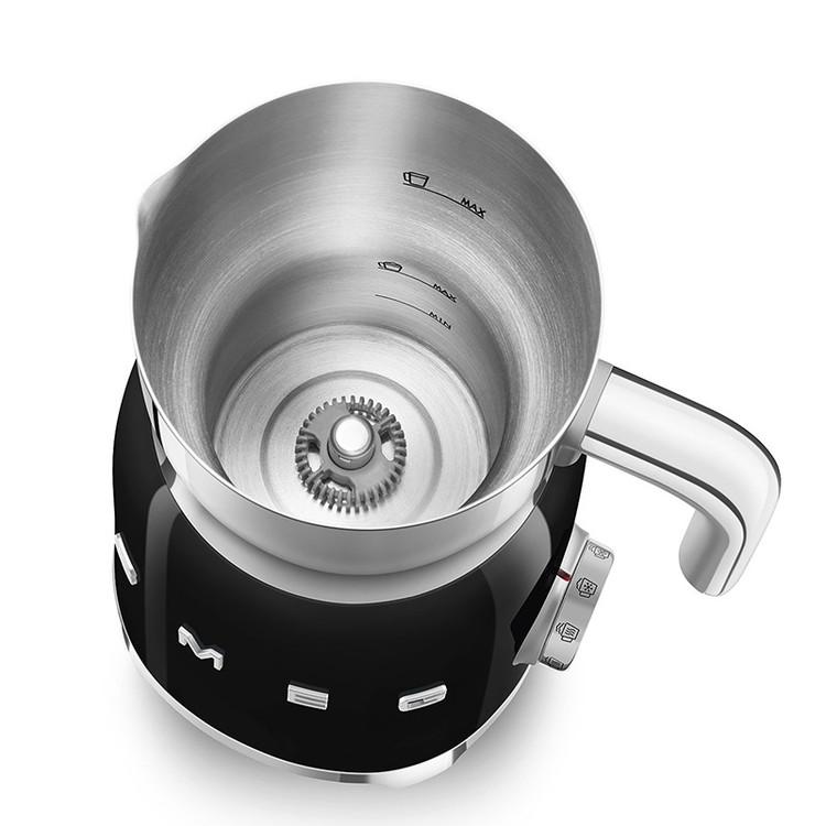 استفاده از فوم شیر خوش طعم و باکیفیت برای تهیه نوشیدنیهای مشتق شده از قهوه، همواره طرفداران پر و پا قرص خود را دارد. کف شیر ساز اسمگ مدل SMEG MFF01BLUK شما را یاری خواهد کرد تا فرایند تهیه انواع مختلف از کف شیر را به آسانی و در اسرع وقت به انجام برسانید. طراحی بینظیر همیشگی محصولات برند اسمگ شامل حال این محصول نیز شده است. همچنین کاربری ارگونومیک و آسان این کف ساز موجب شده تا استفاده از آن همواره تجربهای لذتبخش را در اختیار شما قرار دهد. سیستم گرمایشی القایی به کار رفته در کف ساز 500 واتی اسمگ مدل MFF01BLUK موجب شده تنها با تنظیم عملکرد موردنیاز، فوم شیر را باکیفیت مطلوب و دلخواه خود در کوتاهترین زمان ممکن تهیه کنید. از طریق این کف ساز میتوانید تمامی سلایق را اغنا کنید؛ به لطف برخورداری از 6 برنامه اتوماتیک و یک عملکرد دستی یا Manual قادر به تهیه فوم شیر جهت استفاده در انواع نوشیدنیهای سرد و گرم از جمله هات چاکلت یا شکلات داغ، شیر گرم، شیر گرم با کف سبک، شیر گرم با کف متراکم، شیر سرد با کف سبک و شیر سرد با کف متراکم خواهید بود. انجام تنظیمات بر روی این کف ساز از طریق کنترلر چرخشی و به راحتی قابل انجام است. همچنین با توجه به قرار دهی دو همزن با کارایی متمایز در اقلام جانبی دستگاه یکی بهمنظور تهیه شیر گرم و دیگری برای تهیه نوشیدنی مرکب از شیر و شکلات عملکردهای کف ساز اسمگ مدل MFF01BLUK با تنوع همراه کرده است. وجود درپوش تریتانی از پاشیدن شیر به فضای خارج از مخزن 600 میلیلیتری این کف ساز جلوگیری خواهد کرد. برخورداری از پایههای ضدلغزش ضمن ممانعت از حرکت دستگاه در حین انجام فرایند ایمنی استفاده از آن را متضمن میشود. جنس متریال ساخت دستگاه مرکب از استیل و پلاستیک فشرده است. بخشهای متشکل از پلاستیک فاقد ماده شیمیایی مضر BPA بوده که این امر سلامت استفاده از دستگاه را حاصل میشود.