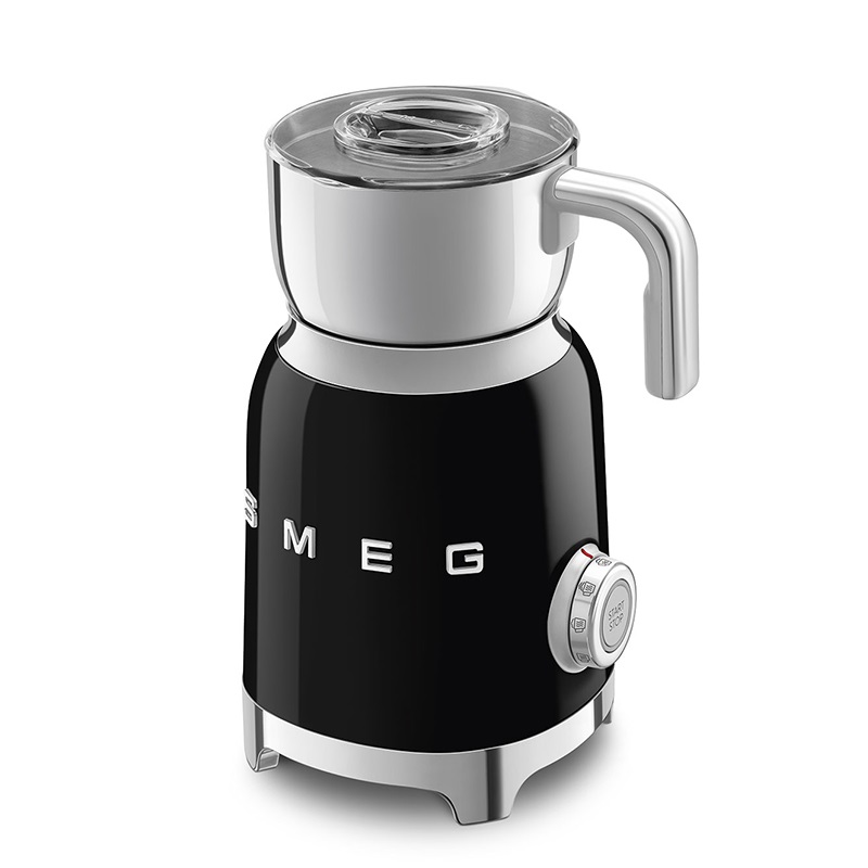 استفاده از فوم شیر خوش طعم و باکیفیت برای تهیه نوشیدنیهای مشتق شده از قهوه، همواره طرفداران پر و پا قرص خود را دارد. کف شیر ساز اسمگ مدل SMEG MFF01BLUK شما را یاری خواهد کرد تا فرایند تهیه انواع مختلف از کف شیر را به آسانی و در اسرع وقت به انجام برسانید. طراحی بینظیر همیشگی محصولات برند اسمگ شامل حال این محصول نیز شده است. همچنین کاربری ارگونومیک و آسان این کف ساز موجب شده تا استفاده از آن همواره تجربهای لذتبخش را در اختیار شما قرار دهد. سیستم گرمایشی القایی به کار رفته در کف ساز 500 واتی اسمگ مدل MFF01BLUK موجب شده تنها با تنظیم عملکرد موردنیاز، فوم شیر را باکیفیت مطلوب و دلخواه خود در کوتاهترین زمان ممکن تهیه کنید. از طریق این کف ساز میتوانید تمامی سلایق را اغنا کنید؛ به لطف برخورداری از 6 برنامه اتوماتیک و یک عملکرد دستی یا Manual قادر به تهیه فوم شیر جهت استفاده در انواع نوشیدنیهای سرد و گرم از جمله هات چاکلت یا شکلات داغ، شیر گرم، شیر گرم با کف سبک، شیر گرم با کف متراکم، شیر سرد با کف سبک و شیر سرد با کف متراکم خواهید بود. انجام تنظیمات بر روی این کف ساز از طریق کنترلر چرخشی و به راحتی قابل انجام است. همچنین با توجه به قرار دهی دو همزن با کارایی متمایز در اقلام جانبی دستگاه یکی بهمنظور تهیه شیر گرم و دیگری برای تهیه نوشیدنی مرکب از شیر و شکلات عملکردهای کف ساز اسمگ مدل MFF01BLUK با تنوع همراه کرده است. وجود درپوش تریتانی از پاشیدن شیر به فضای خارج از مخزن 600 میلیلیتری این کف ساز جلوگیری خواهد کرد. برخورداری از پایههای ضدلغزش ضمن ممانعت از حرکت دستگاه در حین انجام فرایند ایمنی استفاده از آن را متضمن میشود. جنس متریال ساخت دستگاه مرکب از استیل و پلاستیک فشرده است. بخشهای متشکل از پلاستیک فاقد ماده شیمیایی مضر BPA بوده که این امر سلامت استفاده از دستگاه را حاصل میشود.