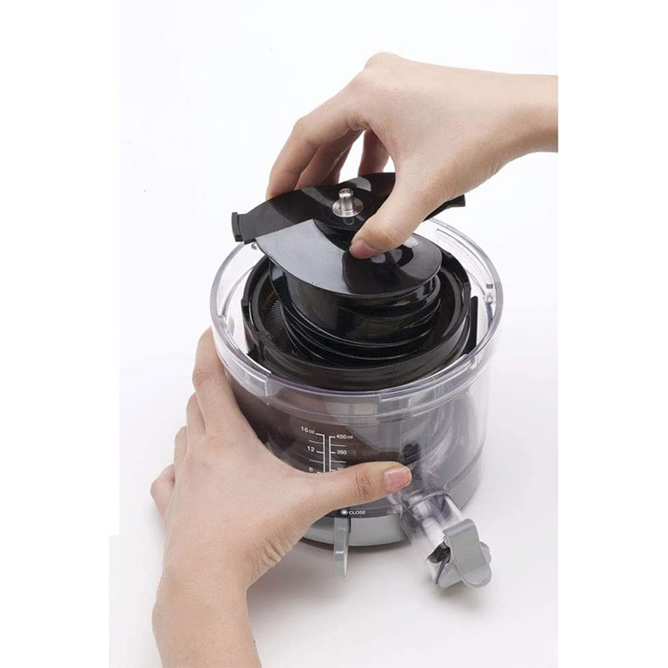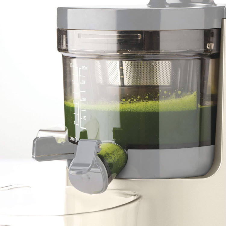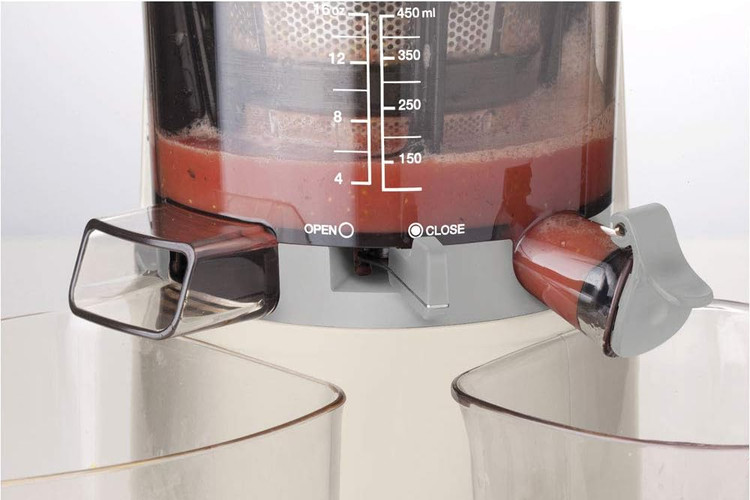 عصاره گیر SJF01CRUK محصول تولیدی شرکت اسمگ است تا بهوسیله آن یک عصاره کاملا طبیعی را بهترین شکل برای خود و عزیزانتان تهیه کنید. موتور این دستگاه 150 وات قدرت دارد و عملکرد آن به صورت القایی است که با استفاده از آن حداکثر 43 دور در دقیقه میزند تا ذرهای از آب میوهها در داخل بافت آن باقی نماند و بتوانید از نوشیدن یک لیوان آبمیوه فوقالعاده لذیذ نهایت لذت را ببرید. تیغه این محصول توانایی چرخش معکوس و یا چرخش به دو سمت را دارد. نوع کنترل این محصول دکمهای است که به سادگی میتوانید با فشردن کلید اقدام به گرفتن عصاره میوهها کنید. مخزن آبمیوه آن 1 لیتر گنجایش دارد و به شکل یک پارچ در خارج از دستگاه قرار دارد و همچنین در داخل دستگاه قابلیت نگهداری آبمیوه به میزان 500 میلی لیتر نیز وجود دارد و ظرفیت مخزن یا پارچ تفاله گیر آن 1.6 لیتر و جنس این دو مخزن از پلاستیک است. بهکارگیری یک دهانه ورودی کوچک برای ورود میوهها یکی از مزیتهای این دستگاه است تا با استفاده از آن قطعات در سایز مناسب را به داخل آن هدایت کنید. فیلتر ریز و درشت موجب میشود تا یک آبمیوه طبیعی بدون ذرهای پالپ برای شما آماده گردد. جنس این فیلترها از استیل ضد زنگ است تا طعم و کیفیت آبمیوه شما تغییری پیدا نکند. سیستم ضد چکه باعث میشود تا به راحتی بتوانید جلوی چکه کردن قطرات را بگیرید و محیط کار شما تمیز بماند. قفل ایمنی در پوش از باز شدن ناخواسته درب در حین کار کردن جلوگیری میکند و از وقوع هرگونه حادثهای جلوگیری میکند. پایه پلاستیکی برای ثبات بیشتر دستگاه در حین کار کردن و جلوگیری از لق زدن موجب میشود تا با خیال آسوده به انجام فعالیت با این دستگاه بپردازید. شستشوی این محصول بسیار آسان است و میتوانید به صورت مستقیم به زیر شیر آب ببرید و با استفاده از آب به شستشو و نظافت آن بپردازید و یا برای نظافت آن از ماشین ظرفشویی به کار ببرید. جنس بدنه دستگاه از پلاستیک است که در کاهش وزن آن تاثیر مستقیمی داشته است و همچنین نظافت آن را آسانتر کرده است. از یک برس به صورت جداگانه برای نظافت دستگاه استفاده شده است تا بهوسیله آن ذرات چسبیده شده به آن را به راحتی جدا کنید. برای جلوگیری از آسیب رسیدن به کابل برق دستگاه یک محفظه برای جمع کردن و نگهداری ایمن تعبیه شده است.