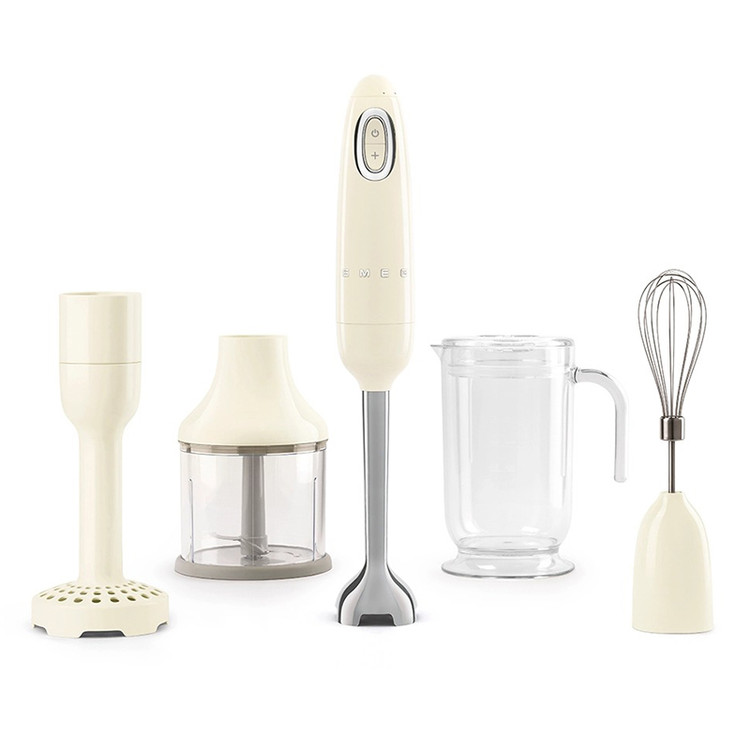 گوشت کوب برقی HBF02CRUK یک محصول بسیار توانمند از شرکت اسمگ با عملکرد و دوام بالا برای برطرف کردن نیازهای آشپزی شما تولید شده است. در تولید این محصول از طراحیهای دهه 1950 میلادی به کار گرفته شده است و با خود احساس نوستالژی قدیم را به همراه دارد. اسم این سری از تولیدات شرکت اسمگ 50S STYLE یا دهه 50 نام دارد و در این سری از تولیدات خود تمام لوازم آشپزخانه را از طراحیهای دهه 50 میلادی الهام گرفته است و با استفاده از یک دکوراتور حرفهای میتوانید حال و هوای خاصی را به آشپزخانه منزل خود ببخشید. یک گوشت کوب برقی همه کاره برای انجام امور مختلف در اختیار شما قرار داده شده است تا با استفاده از آن مواد غذایی خود را آماده کنید و از میل کردن آن لذت ببرید. تغییر سرعت دستگاه به آسانی و بهوسیله کلید کنترل سرعت تغییر مییابد و عملکرد توربو آن سرعت و قدرت را به لطف موتور 700 واتی و سیستم FLOWBLEND انحصاری آن به بالاترین حد ممکن میرساند. استفاه از سه سطح سرعت و عملکرد توربو مواد غذایی شما را هرگونه که تمایل دارید آماده میکند و عملکرد توربو آن با به حداکثر رساندن سرعت دستگاه تنها در ظرف مدت چند ثانیه مواد غذایی شما را خرد و ریز میکند. بهوسیله این موتور قدرتمند تیغههای دستگاه در آهستهترین سرعت 8150 و در سریعترین حالت 14850 دور در دقیقه میچرخد تا به آسانی مواد غذایی را برای شما آماده کند. عملکرد این دستگاه به وسیله لوازم جانبی گوناگونی که برای آن تعبیه شده است چند کاره است، این محصول دارای یک خرد کن بسیار حرفهای با تیغههای بسیار تیز از جنس استیل ضد زنگ است که ضمن افزایش طول عمر و عملکرد خود به شما در خرد و ریز کردن مواد غذایی کمک بسیاری میکند. همچنین بهکارگیری از یک لیوان درجه بندی شده با ظرفیت 1.4 لیتر برای مخلوط کردن مواد غذایی یک ایده بسیار عالی است تا بهآسانی بتوانید مواد غذایی خود را آماده کنید. برای این لیوان از یک درپوش پلاستیکی استفاده شده است تا مانع پاشش مواد غذایی به اطراف شما بشود. همچنین این لیوان و تمامی قطعات پلاستیکی که با مواد غذایی شما در تماس است عاری از ماده شیمیایی مضر BPA بوده و از بیماریهایی که این ماده سرطانزا ممکن است ایجاد کند جلوگیری میکند. دیگر نیازی به زحمتهای متداول برای درست کردن پوره سیب زمینی نیست و به راحتی میتوانید بهوسیله قطعه پوره ساز آن برای خود و عزیزانتان پوره سیب زمینی آماده کنید و به عنوان ساید دیش در کنار بشقاب استیک میل نمایید. همزن بالونی از جنس استیل برای شما در داخل جعبه قرار داده شده است تا با استفاده از آن سفیده تخم مرغ، خامه و انواع سسهای گوناگون را آماده کنید. تمامی تیغهها و قطعات فلزی دستگاه از جنس استیل ضد زنگ است تا در گذر زمان از طول عمر و عملکرد آن افت نکند. طراحی ارگونومیک در تولید این محصول لحاظ شده است تا در حین کار کردن هیچ نقطهای از بدن شما خسته نشود و دچار گردن درد و مچ درد نشوید. به راحتی با فشردن یک دکمه سری دستگاه را جدا کنید و اقدام به فرآیند مورد نظر خود نمایید. جنس بدنه از پلاستیک است که ضمن پایین آوردن وزن، نظافت آن را نیز آسان کرده است.