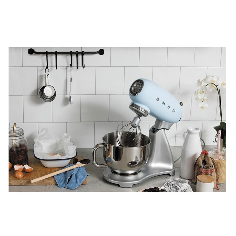 طراحیهای کلاسیک، رنگبندیهای خاص و چشمنواز از بارزههای همیشگی محصولات اسمگ بوده که همواره موجب جلب نظر مخاطبین این برند محبوب شده است. موتور این همزن کاسه دار Direct Drive و دارای عملکرد قابل قبول بوده که در 10 سرعت قابل تنظیم است. حرکت سیارهای شکل همزن موجب ایجاد ترکیبی یکنواخت خواهد شد. بااینحال ساختار فلزی مقاوم میکسر با کنترل میزان لرزش، ایمنی انجام فرایند را افزایش میدهد. کاسه استیل ضدزنگ همزن SMF02 دارای ظرفیت 4.8 لیتری بوده که امکان تهیه ترکیبات تا مقادیر قابل قبولی را مهیا میکند. علاوه بر قابلیت تنظیم فرایند در 10 سرعت متفاوت، به لطف عملکرد SMOOTH START شروع به کار همزن با حداقل سرعت ممکن صورت میگیرد تا از سرریز شدن و پاشیدن مواد غذایی به خارج از کاسه جلوگیری شود. بهرهگیری از لوازم جانبی متنوع از جمله 3 سری بهمنظور انجام تهیه مو%D