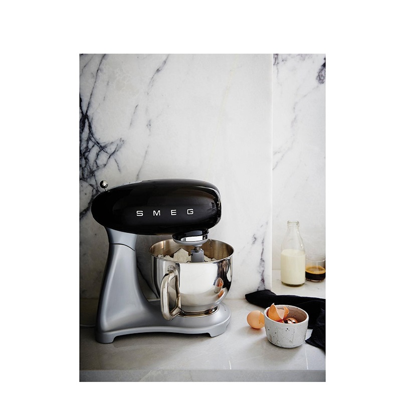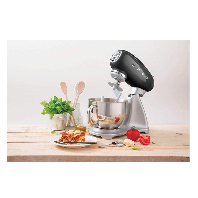 طراحیهای کلاسیک، رنگبندیهای خاص و چشمنواز از بارزههای همیشگی محصولات اسمگ بوده که همواره موجب جلب نظر مخاطبین این برند محبوب شده است. موتور این همزن کاسه دار Direct Drive و دارای عملکرد قابل قبول بوده که در 10 سرعت قابل تنظیم است. حرکت سیارهای شکل همزن موجب ایجاد ترکیبی یکنواخت خواهد شد. بااینحال ساختار فلزی مقاوم میکسر با کنترل میزان لرزش، ایمنی انجام فرایند را افزایش میدهد. کاسه استیل ضدزنگ همزن SMF02 دارای ظرفیت 4.8 لیتری بوده که امکان تهیه ترکیبات تا مقادیر قابل قبولی را مهیا میکند. علاوه بر قابلیت تنظیم فرایند در 10 سرعت متفاوت، به لطف عملکرد SMOOTH START شروع به کار همزن با حداقل سرعت ممکن صورت میگیرد تا از سرریز شدن و پاشیدن مواد غذایی به خارج از کاسه جلوگیری شود. بهرهگیری از لوازم جانبی متنوع از جمله 3 سری بهمنظور انجام تهیه مواد غذایی مختلف، سیستم جلوگیری از داغ شدن بیش از حد موتور، سیستم جلوگیری از داغ شدن بیش از حد موتور، قفل ایمنی هنگام خم شدن سر دستگاه و قابلیت شستشوی قطعات در ماشین ظرفشویی دیگر امکانات همزن برقی اسمگ مدل SMEG SMF02BDUK محسوب میشود.