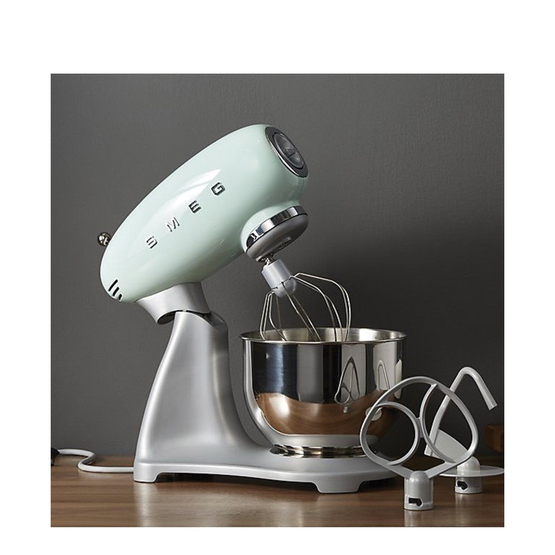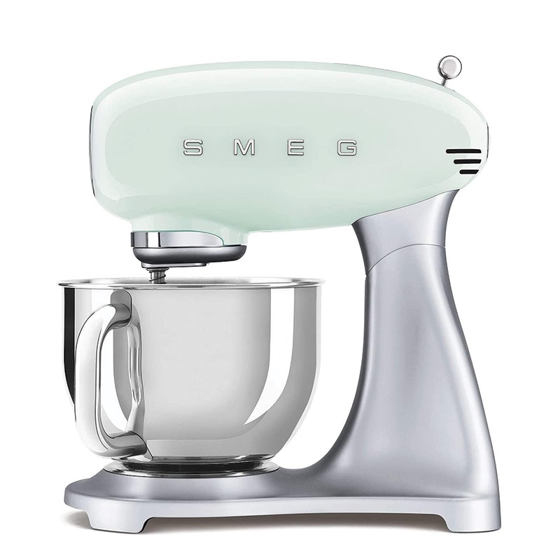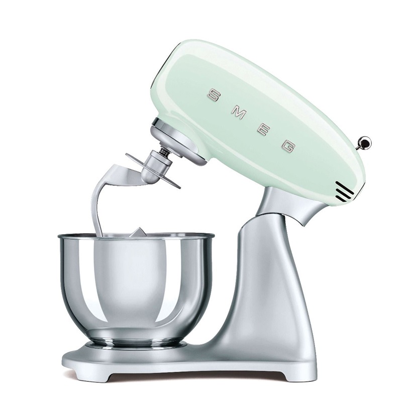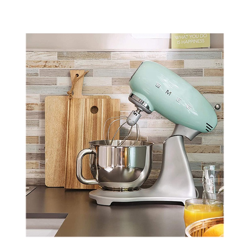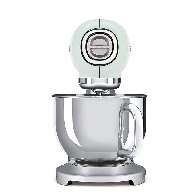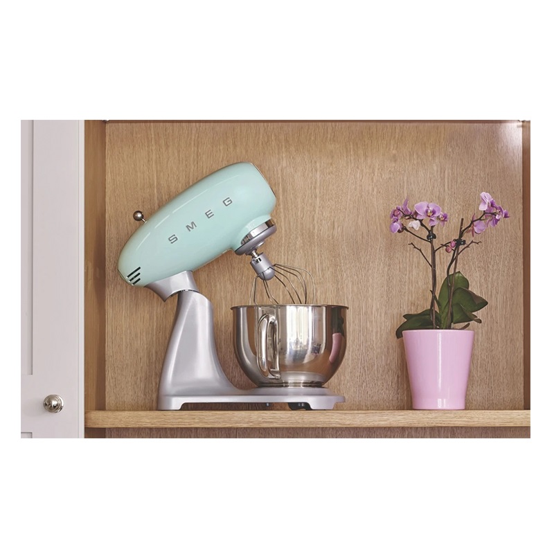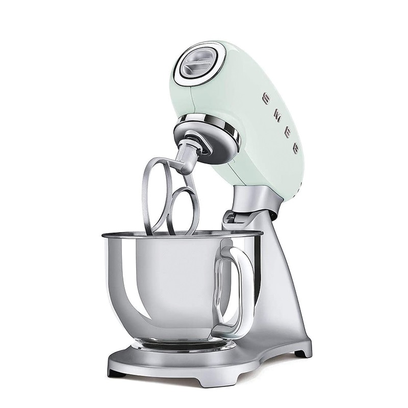 طراحیهای کلاسیک، رنگبندیهای خاص و چشمنواز از بارزههای همیشگی محصولات اسمگ بوده که همواره موجب جلب نظر مخاطبین این برند محبوب شده است. موتور این همزن کاسه دار Direct Drive و دارای عملکرد قابل قبول بوده که در 10 سرعت قابل تنظیم است. حرکت سیارهای شکل همزن موجب ایجاد ترکیبی یکنواخت خواهد شد. بااینحال ساختار فلزی مقاوم میکسر با کنترل میزان لرزش، ایمنی انجام فرایند را افزایش میدهد. کاسه استیل ضدزنگ همزن SMF02 دارای ظرفیت 4.8 لیتری بوده که امکان تهیه ترکیبات تا مقادیر قابل قبولی را مهیا میکند. علاوه بر قابلیت تنظیم فرایند در 10 سرعت متفاوت، به لطف عملکرد SMOOTH START شروع به کار همزن با حداقل سرعت ممکن صورت میگیرد تا از سرریز شدن و پاشیدن مواد غذایی به خارج از کاسه جلوگیری شود. بهرهگیری از لوازم جانبی متنوع از جمله 3 سری بهمنظور انجام تهیه مواد غذایی مختلف، سیستم جلوگیری از داغ شدن بیش از حد موتور، سیستم جلوگیری از داغ شدن بیش از حد موتور، قفل ایمنی هنگام خم شدن سر دستگاه و قابلیت شستشوی قطعات در ماشین ظرفشویی دیگر امکانات همزن برقی اسمگ مدل SMEG SMF02GDUK محسوب میشود.