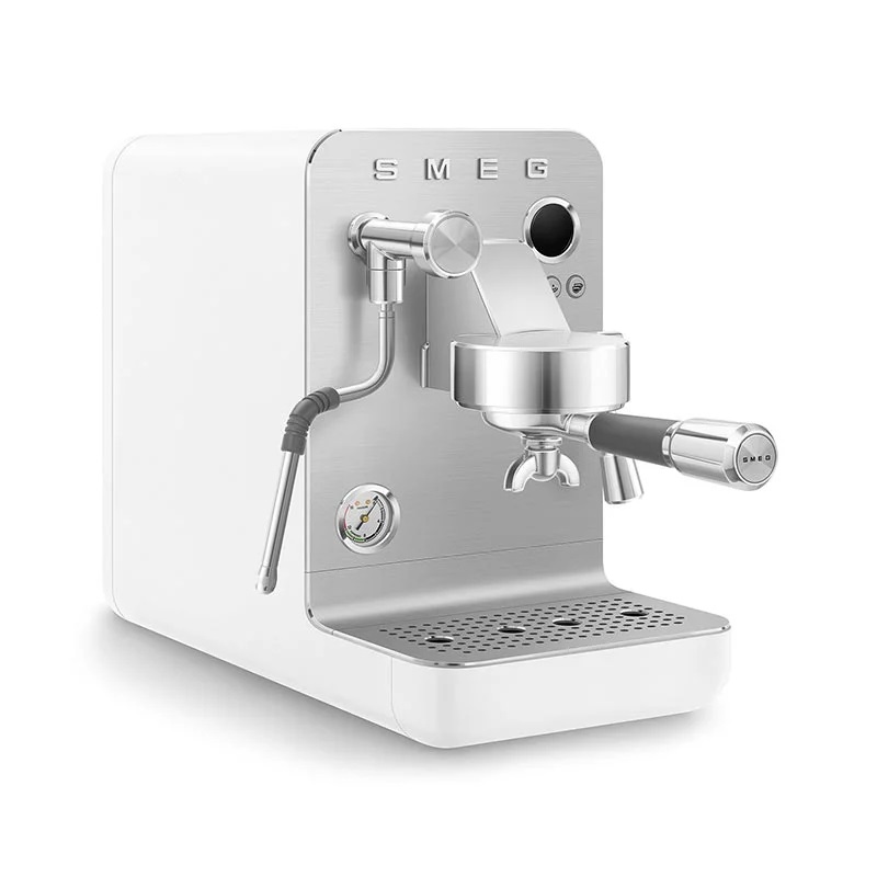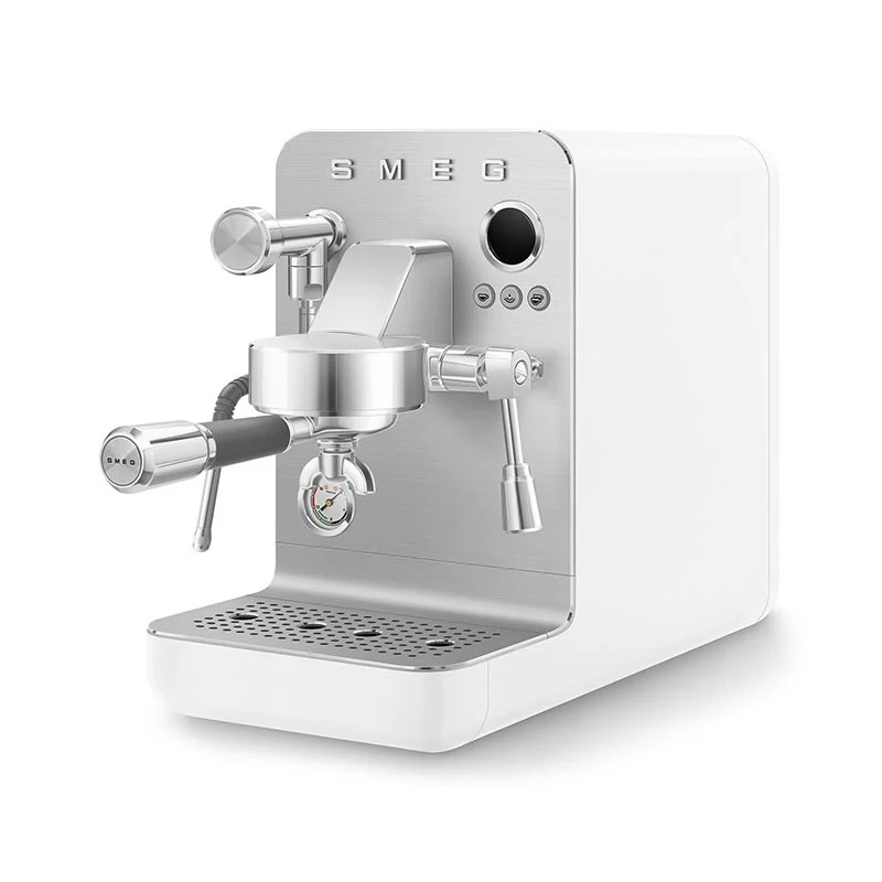 مشخصات کلی برند اسمگ رنگ سفید کشور سازنده چین تحت لیسانس ایتالیا مشخصات فنی نوع دستگاه اسپرسوساز دستی توان مصرفی ۱۶۵۰ وات میزان فشار بخار ۱۵ بار برنامه ها آب جوش- تنظیم میزان غلظت قهوه- تنظیم سختی آب- حالت Eco- تنظیم حالت آماده به کار- تنظیم زبان- تنظیم دما-اسپرسو تک شات- اسپرسو دو شات- بخار قابل استفاده از پودر قهوه نوشیدنی های قابل تهیه اسپرسو- کاپوچینو- آب جوش- شیر داغ سیستم دم آوری سیستم Thermoblock: سیستم گرمایش بلوک حرارتی تعداد فنجان آماده سازی ۱-۲ فنجان تعداد نازل قهوه ۲ عدد تعداد محفظه قهوه ندارد ظرفیت مخزن آب ۱.۷ لیتر قابلیت جداشدن مخزن آب دارد مخزن پودر قهوه ندارد WiFi: قابلیت کنترل از راه دور ندارد قابلیت استفاده از کپسول ندارد سیستم کاپوچینوساز دارد مخزن شیر ندارد قابلیت تولید کف شیر دارد نازل بخار دارد قابلیت تنظیم میزان بخار ۳ حالت قابلیت تنظیم ارتفاع خروجی ندارد کنترل عطر قهوه ندارد تنظیم دمای هر نوشیدنی دارد کاهش زمان داغ کردن: آماده شدن فنجان نوشیدنی در یک چشم بهم زدن دارد نوع فیلتر فیلتر آب (اختیاری) قابلیت دسترسی جداگانه کف شیر – آب داغ قابلیت آسیاب کردن قهوه دارد نوع کنترل دکمه ای نشانگر سطح آب ندارد سینی چکه گیر دارد سیستم نظافت سیستم نظافت دستی برنامه اتوماتیک تمیزی و رسوب زدایی ندارد سیستم ایمنی محافظت از دمای بالا خاموش شدن خودکار دارد قفل کودک ندارد تایمر ندارد هشدار صوتی دارد هشدار خالی بودن مخزن آب دارد دسترسی آسان به تنظیمات کاربری دارد قابلیت انتخاب زبان های مختلف دارد قابلیت نوردهی کلیدها دارد کلید روشن / خاموش دارد قابلیت شستشوی قطعات در ماشین ظرفشویی دارد جنس بدنه استیل و پلاستیک لوازم جانبی لیوان شیرجوش مشخصات نمایشگر و صفحه کنترل نمایشگر دارد صفحه کنترل لمسی ندارد نشانگر روشن بودن دستگاه دارد گنجایش و ابعاد طول سیم برق ۱۰۰ سانتیمتر وزن ۱۲.۸ کیلوگرم ارتفاع ۵۴۵ میلیمتر عرض ۲۸۸ میلیمتر عمق ۵۵۵ میلیمتر سایر مشخصات سایر مشخصات امکان انتخاب ۵ زبان مختلف در کاربری امکان تنظیم ۴ حالت استندبای ۵ دقیقه/ ۱۰ دقیقه/ ۳۰ دقیقه/ ۶۰ دقیقه امکان شخصی سازی تنظیمات در ۴ پروفایل
