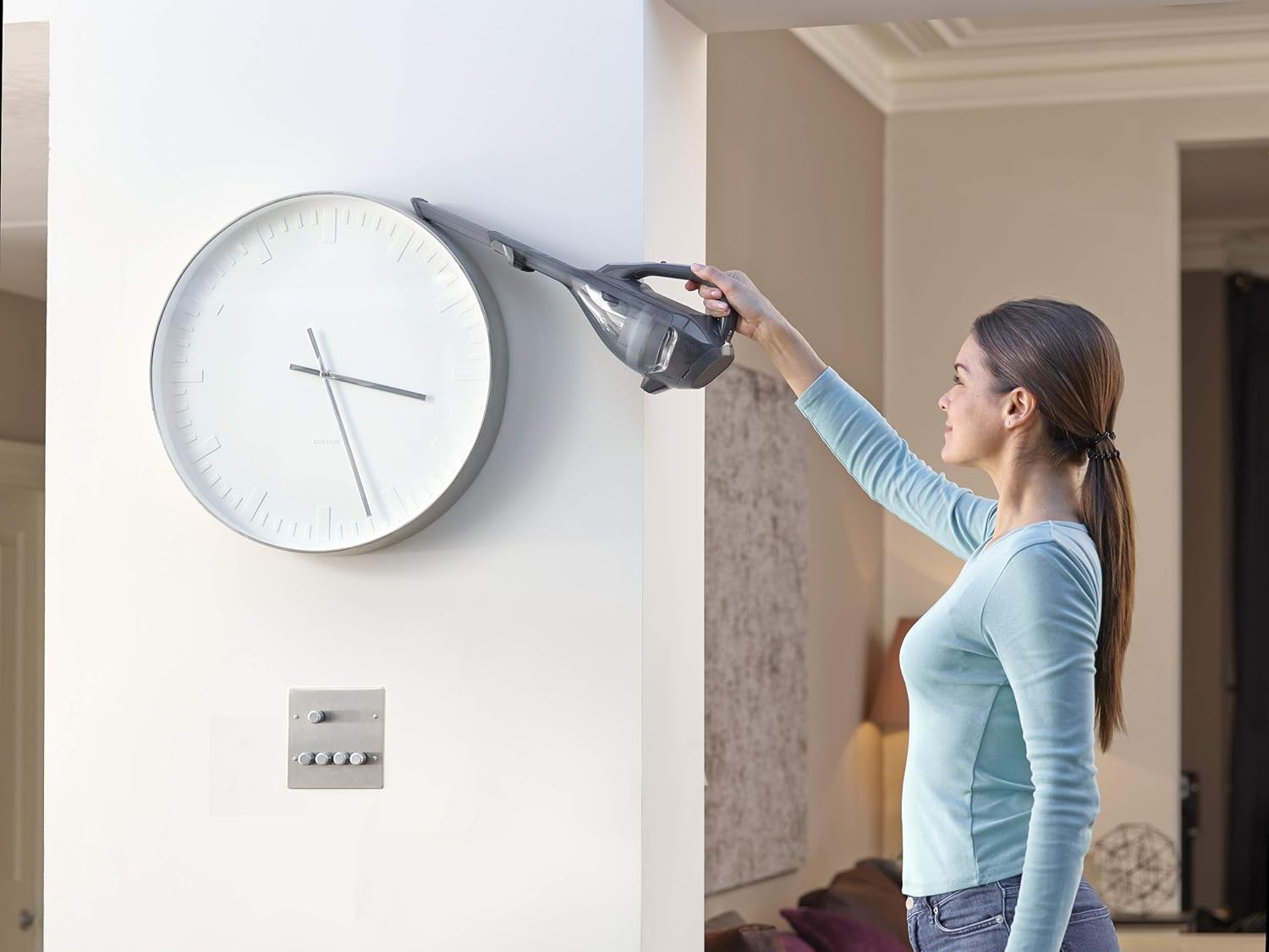 جاروشارژی بلک اند دکر مدل BLACK and DECKER DVA320J، با طراحی شکیل و وزنی سبک شما را در تمیز کردن آسان و سریع محیط و رفع گرد و غبار یاری میکند. طراحی لوله سری این جاروشارژی به گونه ایست که امکان دسترسی به سخت مکان ها و درزهای محیط آپارتمان و تمیز کردن آنها را در کمترین زمان ممکن و با 10% راحتی بیشتر نسبت به مدلهای پیش از خود میسر میسازد. توان 21.6 واتی موتور این جاروشارژی جمعوجور به همراه بهرهگیری از باتری 10.8 ولتی از این دستگاه یک گزینه ایدهآل برای انجام انواع نظافتهای کوتاه و روزمره ساخته است. همچنین وزن سبک در کنار فناوری بیسیم موسوم به ‘grab & go’ حمل و استفاده از این جاروشارژی را آسان و بی دردسر میکند. به لطف بهرهگیری از سیستم فیلتراسیون قابل شستشوی Cyclonic Action، حرکت سریع و گذر با شتاب جریان هوا از سطح منحنی ورودی و جداسازی گرد و غبار از هوا، موجب افزایش عمر مفید دستگاه میشود. مخزن شیشهای و شفاف جاروشارژی بلک اند دکر مدل BLACK and DECKER DVA320J در صورت پر شدن، به آسانی با جداسازی از دستگاه، تخلیه و آماده شروع فرایند نظافت مجدد خواهد شد.