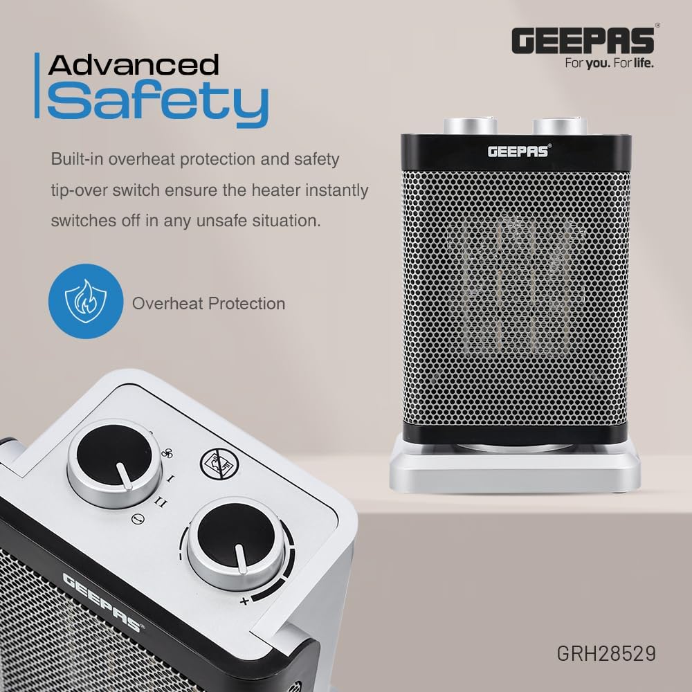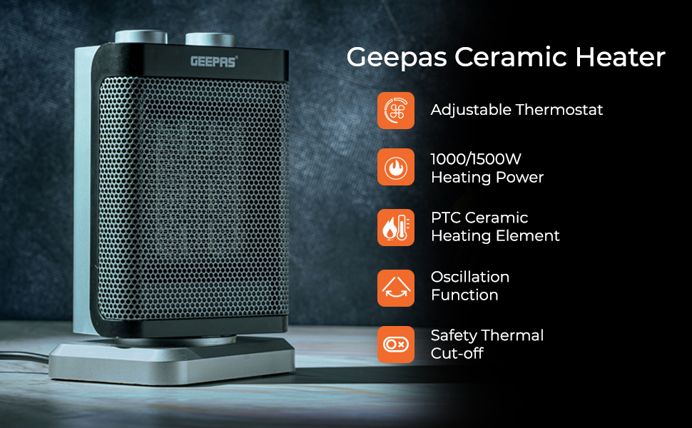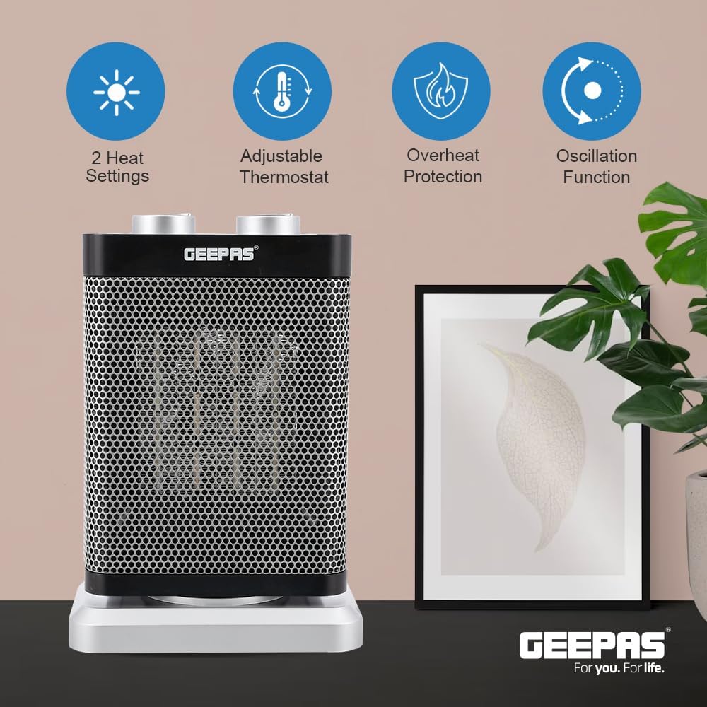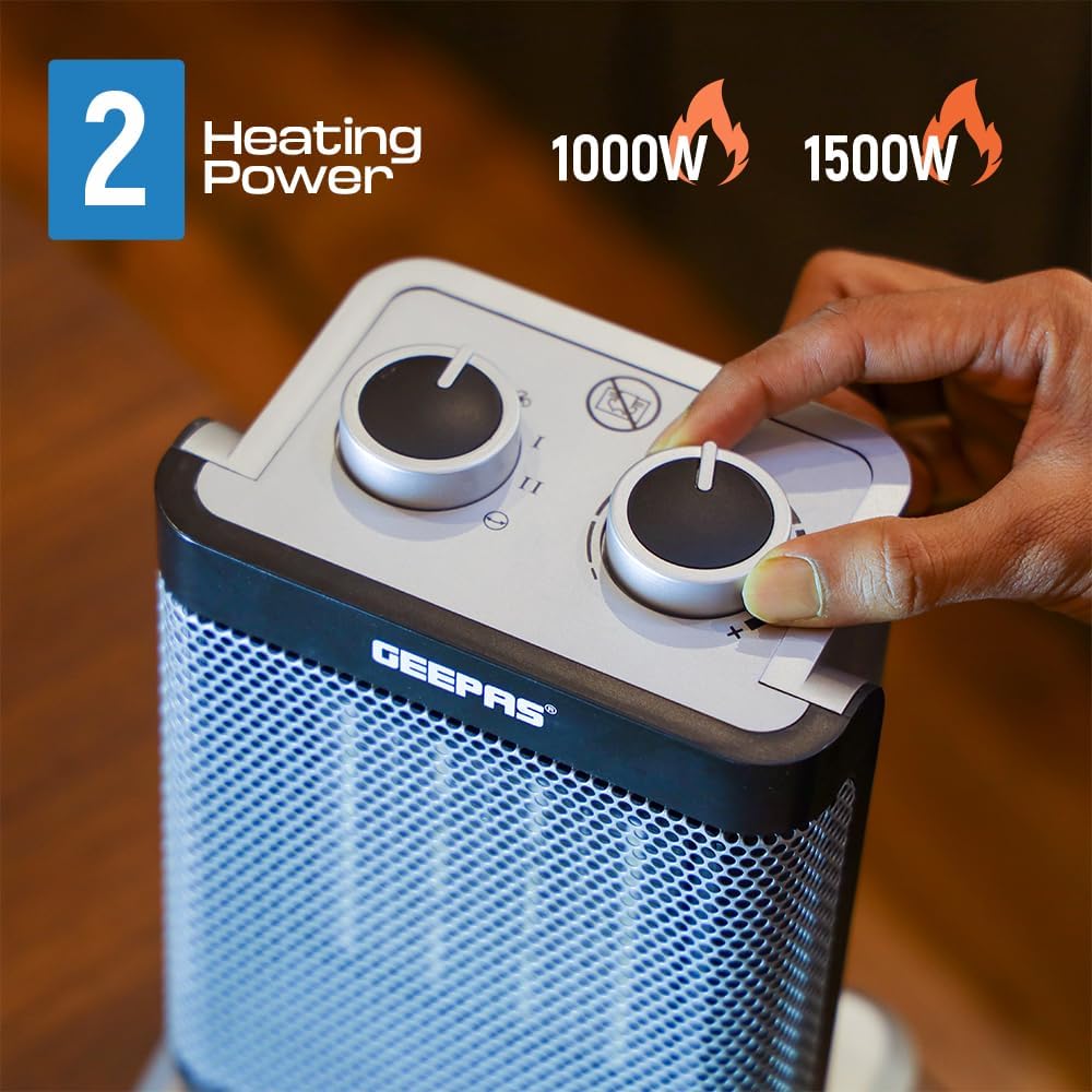 فناوری سرامیک - این بخاری فن دار Geepas PTC از عناصر گرمایش سرامیکی پیشرفته استفاده می کند که گرمایش سریعتر و کارآمدتری را نسبت به بخاری های سنتی ارائه می دهد. این بخاری برقی برای گرم نگه داشتن شما در زمستان امسال عالی است 2 تنظیمات برق، نوسان و حالت فقط فن - شامل تنظیمات توان 1500 وات (بالا) و 1000 وات (کم) و همچنین حالت نوسان خودکار برای گرم کردن اتاق ها و فضاهای بزرگتر. ترموستات قابل تنظیم - یک کنترل ترموستات با کاربری آسان و کاملاً قابل تنظیم در مینی هیتر تعبیه شده است تا دمای اطراف را کنترل کند و از گرمایش و بهره وری انرژی بهینه اطمینان حاصل کند. قابل حمل - طراحی جمع و جور سبک وزن به بخاری اجازه می دهد تا به راحتی به هر جایی که بیشتر به آن نیاز دارید حمل شود و برای استفاده در خانه ها، اتاق خواب ها، گاراژها، مدارس و ادارات عالی است. ایمنی پیشرفته - محافظ داخلی در برابر گرمای بیش از حد و سوئیچ بازگردانی ایمنی
