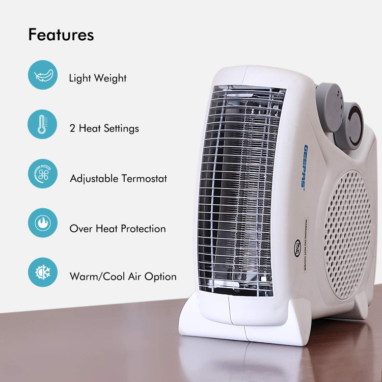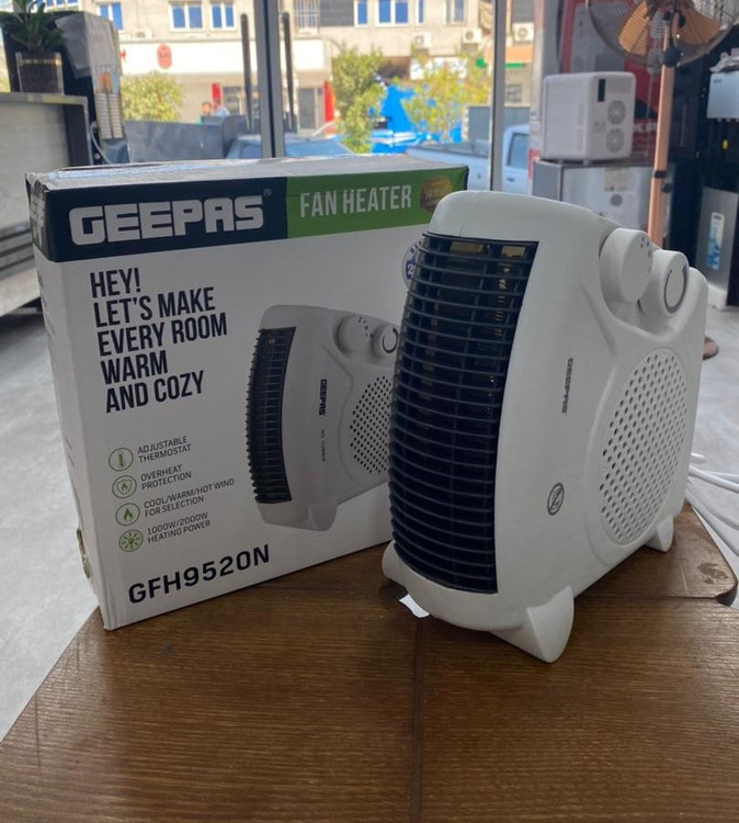 فن هیتر GEEPAS مدلGFH9520 ، یک دستگاه گرمایش کم حجم و وزن و با کارایی بالا و ایمنی مناسب می باشد. بدنه دستگاه از جنس مواد پلاستیک پلی کربنات مقاوم به حرارت بوده و از طرفی بعلت دمش توسط فن دستگاه ، حرارت به اندازه ای نمی رسد که پلاستیک آسیب ببیند . البته دستگاه در برابر گرم شدن بیش از حد به هر دلیل ، حفاظت شده است و با عمل کردن یک کلید بی متال اتصال الکتریکی المنت قطع شده ، گرمایش متوقف می شود . توان فن هیتر جیپاس قابل تنظیم در دو مقدار 1000 و 2000 وات است. همچنین دستگاه در وضعیت باد خنک بدون گرمایش نیز کار می کند .با ترموستات روی پنل دستگاه می توان دمای دلخواه را در محیط ایجاد کرد .با آزمون و خطا و با تست کردن به کمک یک دما سنج می توانید با توجه به مکانی که دستگاه را قرار می دهید دمای قطع را بدست بیاورید که دمای محیط جانبی دستگاه که در معرض باد مستقیم نباشد ، می باشد و می توانید بر روی ولوم ترموستات نشان گذاری کنید . دستگاه از یک فیوز 13 آمپر در داخل سه شاخه خارجی بهره می برد که به هنگام اتصال کوتاه و یا ایراد در دستگاه ، جهت جلوگیری از آسیب احتمالی به دستگاه و یا شبکه برق خانگی ، برق دستگاه را قطع می کند .