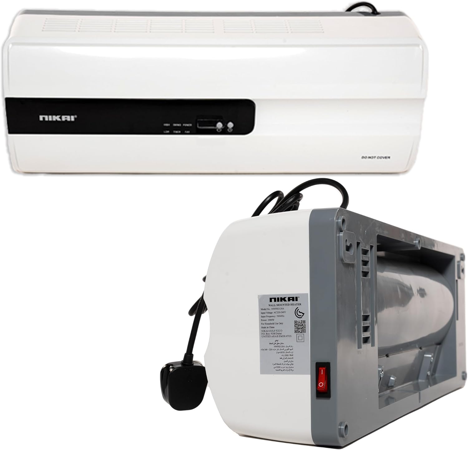 برند نیکابی با تولید بیش از 200 تنوع کالا از جمله کالاهای سرمایشی ،گرمایشی ،لوازم خانگی و آرایشی و زیبایی جزء برندهای با معتبر و شناخته شده در آسیا و خاورمیانه محسوب می شود که محصولات با کیفیت بالا و دارای استانداردهای بین المللی تولید می نماید. بخاری برقی دیواری و رومیزی نیکای مدل NWFH2120A دارای قابلیت نصب بر روی دیوار ویا استفاده بر روی میز می باشد که دارای توان 2000 وات می باشد.این بخاری برقی دارای 3 حالت دما می باشد ؛فن (جهت استفاده در تابستان)،دمای گرم،دمای خیلی گرم(داغ) می باشد. این دستگاه دارای صفحه نشانگر LED می باشد و حالت های مختلف تنظیمات را بصورت دستی بر روی دستگاه و یا به وسیله ریموت کنترل می توان تنظیم نمود.این دستگاه دارای چرخش بصورت بالا پایین می باشد.همچنین قابلیت تنظیم زمان خاموش شدن از 1 ساعت تا 8 ساعت امکان پذیر می باشد.