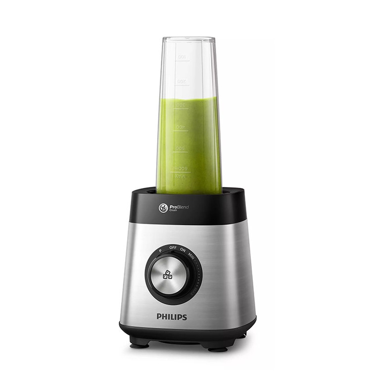 مخلوط کن فیلیپس مدل PHILIPS HR3573 دستگاهی تک کاره از سری 5000 این برند با کیفیت است. موتور 1000 واتی این مخلوط کن با بهره گیری از فناوری ProBlend قادر به انجام عملکردی با بازدهی حداکثری بوده و از قدرت قابلقبولی برخوردار است. وجود تیغههای 6 پره منحصر به فرد از جنس استیل ضد زنگ با برخورداری از سیستم ProBlend Crush موجب شده تا عملیات ترکیب مواد غذایی سرسخت و همچنین یخ، تا دو برابر سریع تر از همیشه انجام شده و شما را در تهیه یک اسموتی کاملا مورد انتظار خود یاری کند. پنل دستگاه دارای کنترل چرخشی بوده که امکان تنظیم سرعت چندگانه از بازه کمینه تا بیشنه توان موتور را به منظور کار بر روی مواد غذایی با بافت متنوع مهیا میکند. همچنین با استفاده از عملکرد Pulse قادر خواهید بود ترکیب خود را یکدست کنید و تکههای مواد غذایی را به منظور خرد شدن و اختلاط نهایی به سمت تیغه حرکت دهید. طراحی خلاقانه پارچ 1.5 لیتری مخلوط کن از جنس شیشه و مدرج و همچنین عاری از ماده شیمیایی مضر BPA، انجام فرایند ترکیب را برای دستیابی به بهترین و سالمترین نتیجه ممکن تضمین میکند. علاوه بر این وجود یک پارچ اسموتی ساز موسوم به On the go با ظرفیت 600 میلیلیتر دیگر ویژگی این دستگاه به حساب میآید. امکان تفکیک آسان قطعات تحت فناوری Easyclean انجام فرایند شستشوی آنها را حتی در ماشین ظرفشویی به سهولت فراهم میکند.