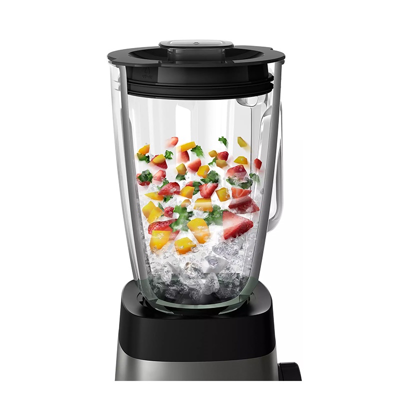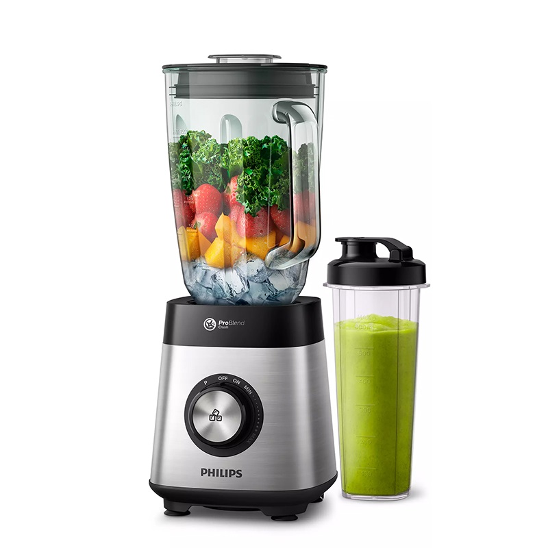 مخلوط کن فیلیپس مدل PHILIPS HR3573 دستگاهی تک کاره از سری 5000 این برند با کیفیت است. موتور 1000 واتی این مخلوط کن با بهره گیری از فناوری ProBlend قادر به انجام عملکردی با بازدهی حداکثری بوده و از قدرت قابلقبولی برخوردار است. وجود تیغههای 6 پره منحصر به فرد از جنس استیل ضد زنگ با برخورداری از سیستم ProBlend Crush موجب شده تا عملیات ترکیب مواد غذایی سرسخت و همچنین یخ، تا دو برابر سریع تر از همیشه انجام شده و شما را در تهیه یک اسموتی کاملا مورد انتظار خود یاری کند. پنل دستگاه دارای کنترل چرخشی بوده که امکان تنظیم سرعت چندگانه از بازه کمینه تا بیشنه توان موتور را به منظور کار بر روی مواد غذایی با بافت متنوع مهیا میکند. همچنین با استفاده از عملکرد Pulse قادر خواهید بود ترکیب خود را یکدست کنید و تکههای مواد غذایی را به منظور خرد شدن و اختلاط نهایی به سمت تیغه حرکت دهید. طراحی خلاقانه پارچ 1.5 لیتری مخلوط کن از جنس شیشه و مدرج و همچنین عاری از ماده شیمیایی مضر BPA، انجام فرایند ترکیب را برای دستیابی به بهترین و سالمترین نتیجه ممکن تضمین میکند. علاوه بر این وجود یک پارچ اسموتی ساز موسوم به On the go با ظرفیت 600 میلیلیتر دیگر ویژگی این دستگاه به حساب میآید. امکان تفکیک آسان قطعات تحت فناوری Easyclean انجام فرایند شستشوی آنها را حتی در ماشین ظرفشویی به سهولت فراهم میکند.