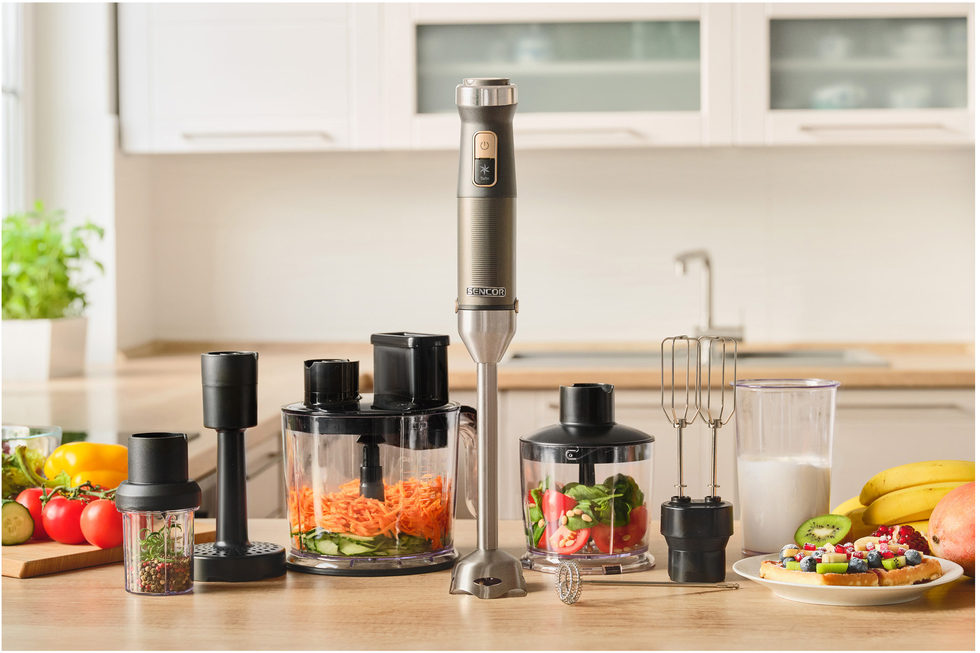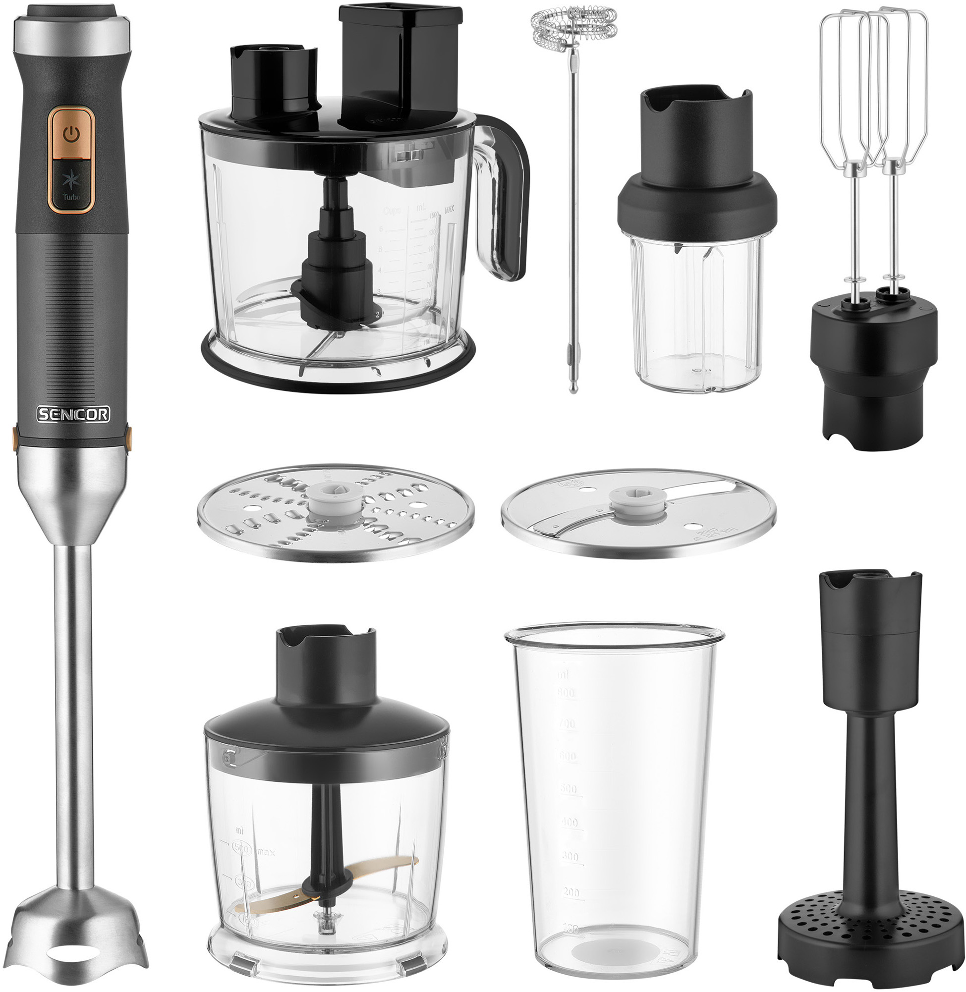 گوشت کوب، خردکن، سالادساز، آسیاب،سیب زمینی پوره کن، فوم شیر ساز و همزن
