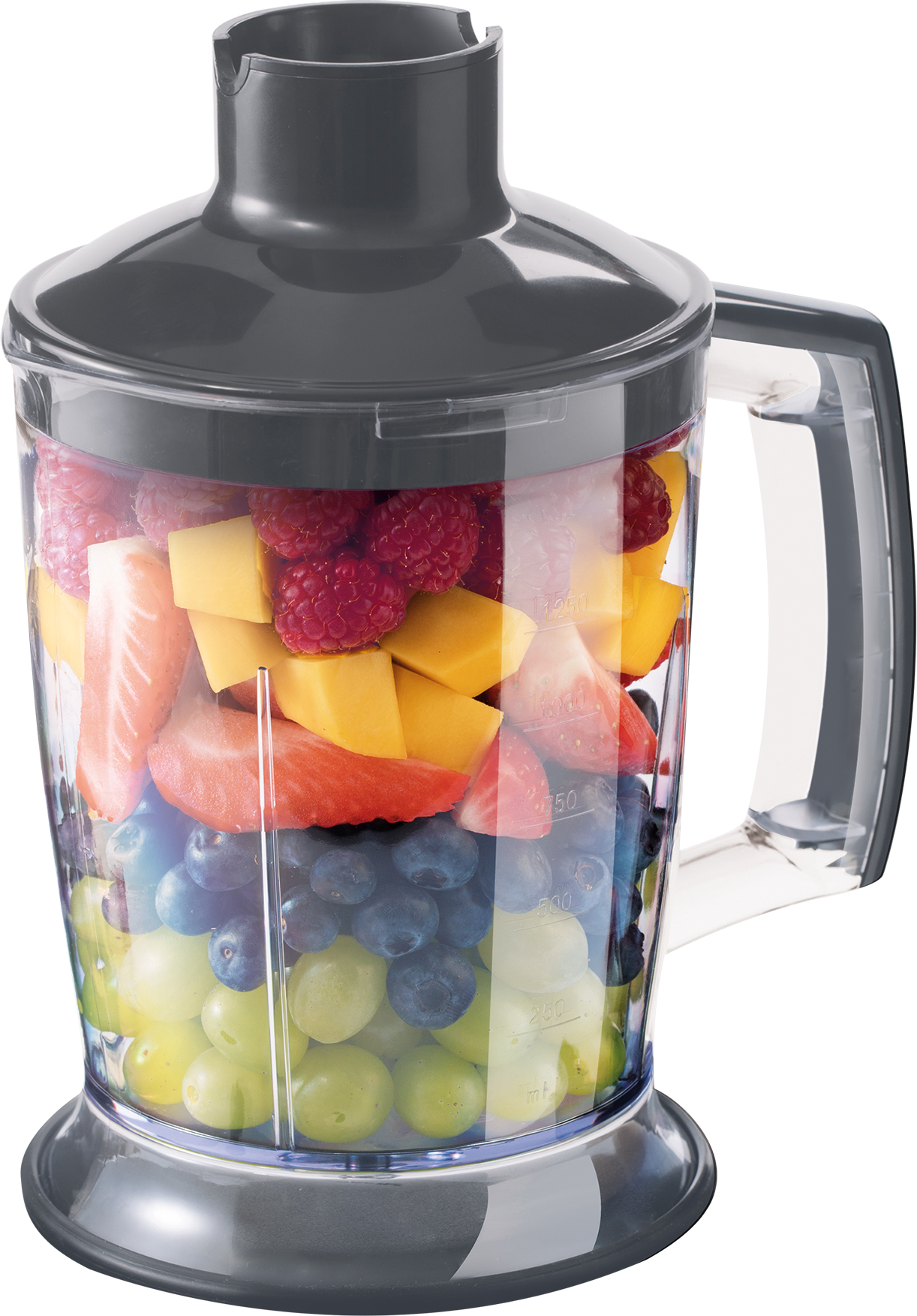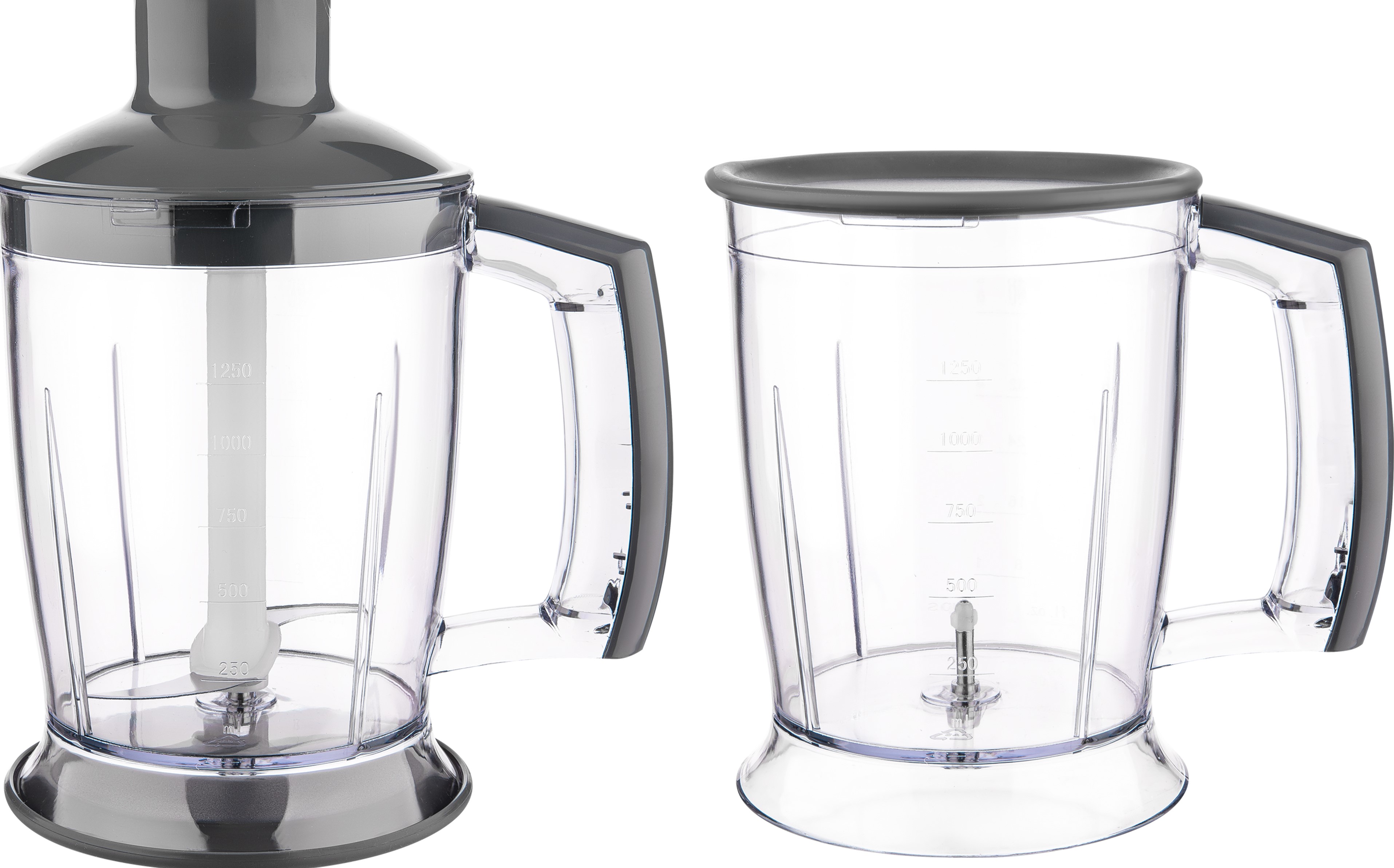 دیگر لازم نیست برای تهیه مواد اولیه خوراکی همچون پیاز خرد شده نیاز به صرف زمان و دردسرهای مختلف باشید. علاوه بر این با وجود قطعه خردکن این دستگاه نیازی به خرید قطعه جدید نیز ندارید. خردکن این محصول فرایند تهیه مواد اولیه مختص پخت را بهآسانترین شکل ممکن ترتیب میدهد. ظرفیت این قطعه از دستگاه، ۱۲۵۰میلیتر است. این کاسه خردکن نیز شفاف و مدرج بوده و دارای تیغهای از جنس استیل ضدزنگ است. برخورداری از تیغه تیز و بادوام شما را در خرد کردن میوهها و سبزیجات، انواع دانههای آجیل، گوشت و حتی یخ نیز یاری میدهد.
