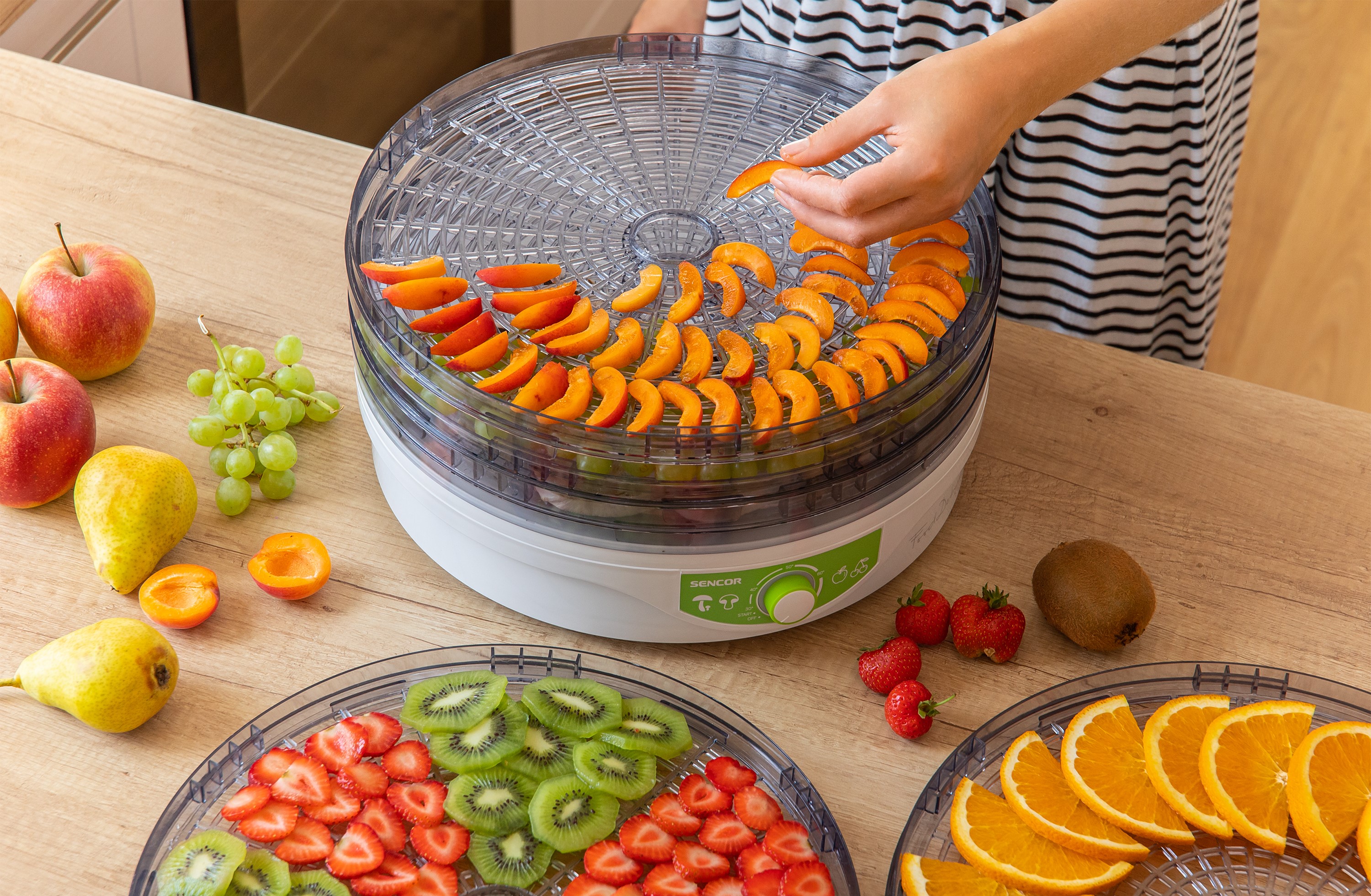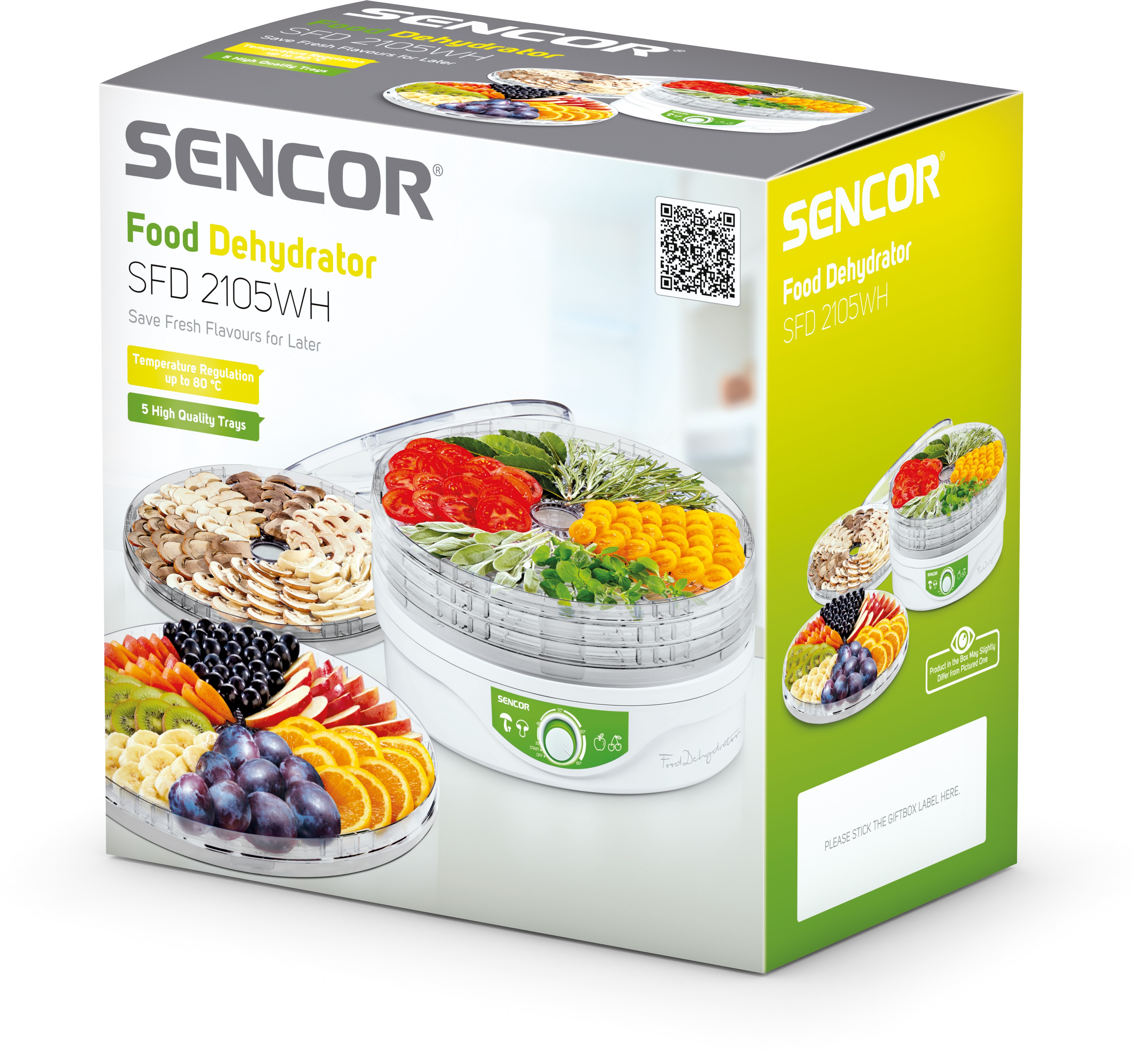 امکان تهیه میوه و سبزیجات خشک به صورت طبیعی از یک طرف و اطمینان از عدم استفاده رنگها و افزودنیهای شیمیایی بر روی مواد خوراکی از طرف دیگر، اهمیت وجود دستگاهی در دسترس جهت تهیه میوه و سبزی خشک شده را بیش از همیشه مشخص میکند. میوه و سبزی خشک کن سنکور مدل SENCOR SFD 2105WH دستگاهی ارگونومیک و کارا با عملکردی مناسب انتخابی جذاب برای طرفداران میوههای خشک به شمار میآید. با مقایسه قیمت میوه و سبزی خشک کن سنکور مدل 2105WH با سایر مدلهای این دستگاه با توجه به کیفیت آنها پی خواهید برد که خرید میوه خشک کن سنکور کاملا مقرون به صرفه خواهد بود. تعداد طبقات دستگاه 5 طبقه است که با توجه به امکان تغییر ارتفاع قادر است حجم قابل توجهی از میوه و یا سبزیجات را خشک کند. قابلیت تنظیم دما در بین بازه دمایی 30 تا 80 درجه سانتیگراد از طریق کنترلر چرخشی قابل اعمال است؛ سیستم گرمایشی المنتی با توزیع بهینه هوای داغ از طریق تعبیه فن یکپارچه در قسمت میانی سینی موجب شده فرایند خشک شدن میوهها با حفظ طعم اصلی آن همراه شده و تجربهای لذتبخش از طعم میوه خشک شده را در اختیار شما قرار دهد. گفتنی است برخورداری از توان مصرفی 250 واتی میزان بهرهوری مصرف انرژی در میوه و سبزی خشک کن سنکور مدل 2105WH را به طور چشمگیری افزایش میدهد. ایجاد صدای تنها 20 دسی بلی در حین انجام فرایند عملکرد بسیار کمصدای میوه خشک کن را منجر خواهد شد. نکته مهم دیگر این است که علاوه بر خشک کردن میوه و سبزی، امکان خشک کردن گوشت، انواع آجیل، قارچ و سبزیجات نیز به کمک این دستگاه قابل انجام خواهد بود. برخورداری از بدنه و طبقات پلاستیکی شفاف امکان نظارت مداوم بر روی عملکرد دستگاه را به آسانی مهیا میکند. تعبیه فیوز حرارتی از دستگاه در برابر ایجاد حرارت بالا محافظت کرده و به طور خودکار میوه خشک کن را خاموش خواهد کرد. تمامی بخشهای پلاستیکی بهکار رفته در ساخت میوه و سبزی خشک کن سنکور مدل 2105WH فاقد ماده شیمیایی مضر BPA بوده که این امر سلامت مواد غذایی تهیه شده را متضمن میشود. پس از هربار انجام فرایند، شستشوی قطعات دستگاه به آسانی میسر خواهد بود.