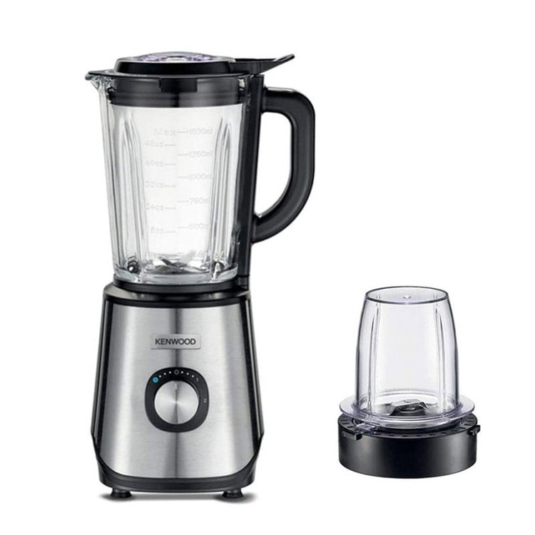مخلوط کن کنوود مدل KENWOOD BLM45.240SS دستگاهی دو کاره از تولیدات این برند است. موتور این دستگاه با توان مصرفی 1000 وات قادر است عملیات اختلاط را به بهترین شکل به انجام برساند. دستگاه دارای تیغههایی 4 پره از جنس استیل ضدزنگ بوده که از تیزی، استحکام و دوام بالایی برخوردار است و مواد غذایی را به بهترین شکل ممکن له و ترکیب میکند. میتوانید بسته به فرایند موردنظر و میزان سختی مواد غذایی از تنظیمات سرعت دستگاه در 2 درجه استفاده کنید. همچنین با تعبیه سرعت Pulse در مخلوط کن BLM45.240SS از ایجاد بافتی یکنواخت در سطح ترکیب مدنظر اطمینان حاصل خواهید کرد. پارچ شیشهای مخلوط کن با ظرفیت 1.5 لیتر قابلیت تهیه میزان قابل توجهی از یک ترکیب غذایی را در اختیار شما قرار میدهد. علاوه بر این وجود یک آسیاب کوچک شما را در جهت ایجاد پودر انواع مواد غذایی اعم از دانههای ادویه و سبزیجات خشک یاری خواهد کرد بنابراین احتیاج به تهیه دستگاهی جدا نخواهید داشت. امکان تفکیک قطعات و شستشوی آنها در ماشین ظرفشویی دیگر ویژگی مخلوط کن کنوود مدل KENWOOD BLM45.240SS به شمار میآید.