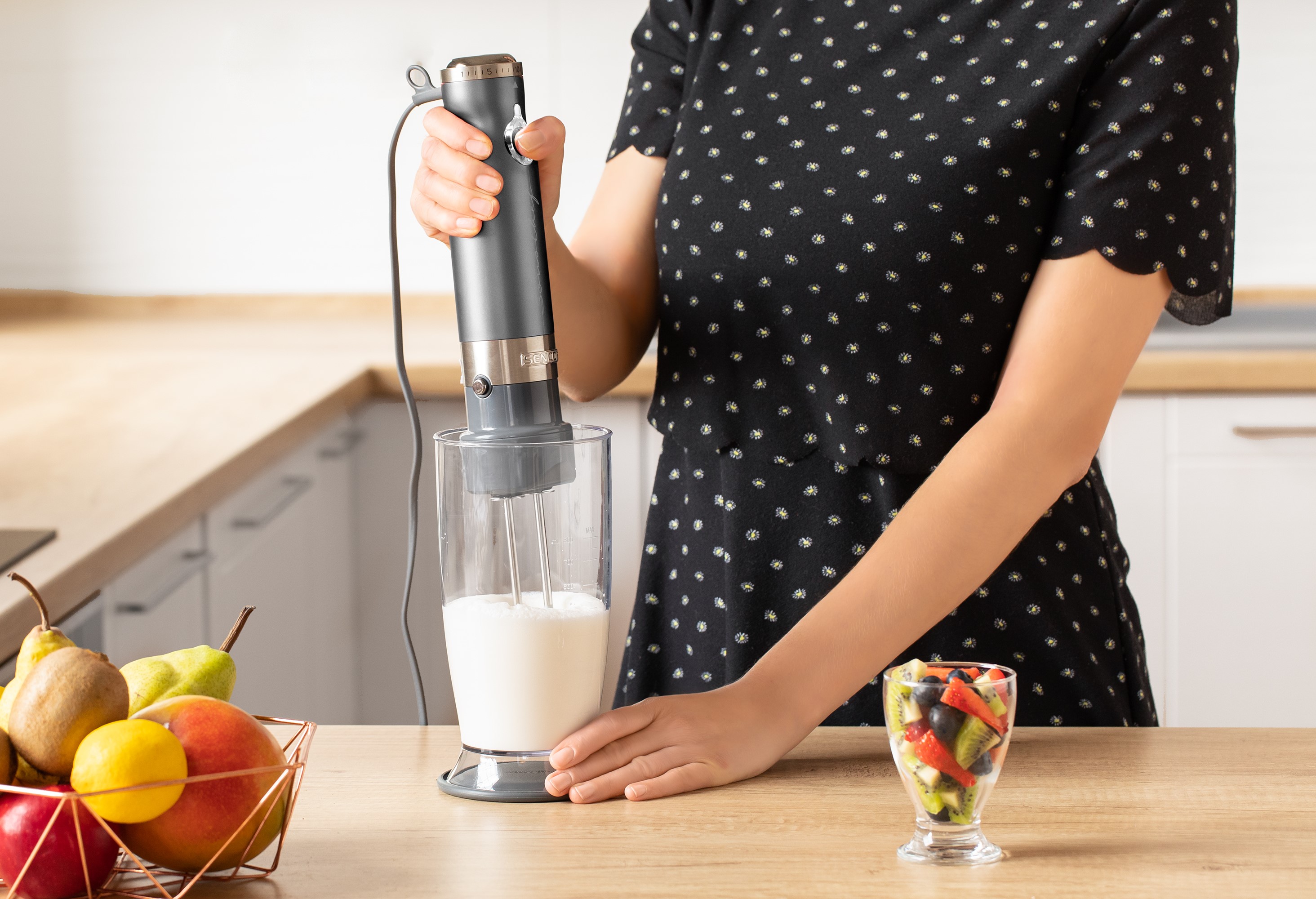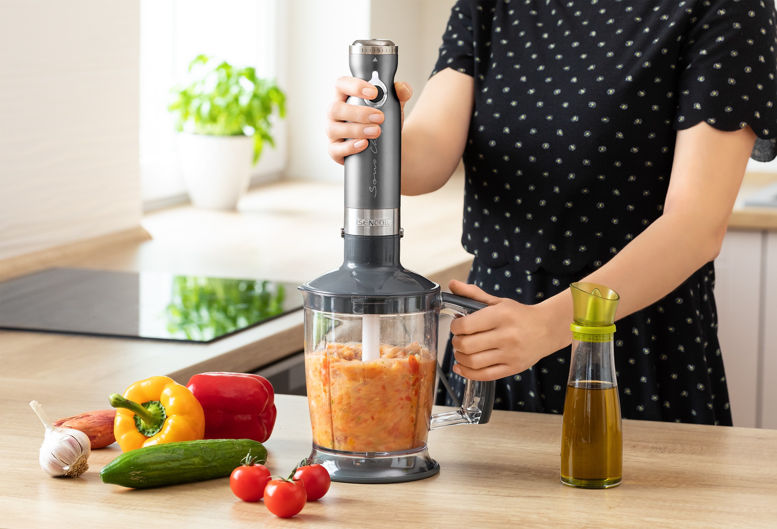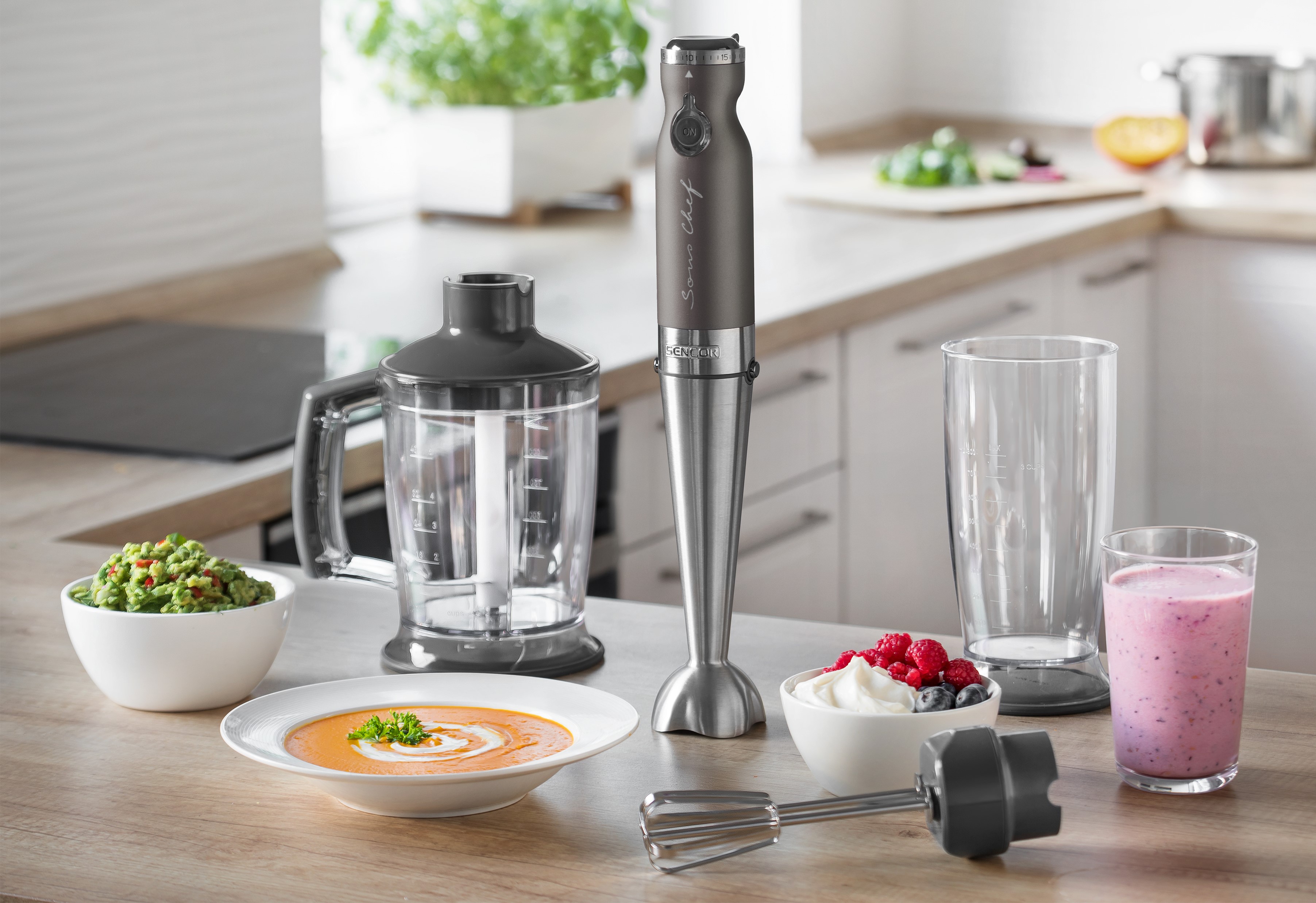 یکی از ویژگیهای دیگر که راحتی بالایی را در کاربری دستگاه در اختیار شما قرار میدهد برخورداری از طیف سرعت گسترده است. وجود ۲۰ سطح سرعت متمایز این امکان را مهیا میکند تا بسته به عملکرد موردنظر و میزان شدت دلخواه، اقدام به تنظیم سطح سرعت دلخواه خود کنید. بنابراین انجام فرایند روی تمامی بافتهای مواد غذایی از نرمترین تا سختترین از طریق این دستگاه قابل انجام خواهد بود. علاوه بر این طراحی دسته ارگونومیک دستگاه که موجب قرار گرفتن کامل و راحت آن در دست میشود دیگر ویژگی در کاربری لذتبخش آن محسوب میشود.