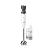 گوشت کوب برقی بوش مدل BOSCH MS6CA4150، با توان مصرفی 800 وات و توانایی انجام چند عملکرد، یک گزینه مناسب برای آشپزخانه شما خواهد بود. موتور قدرتمند این دستگاه با عملکردی پرسرعت و در عین حال کم صدا و کم لرزش آماده است تا فرایند له و مخلوط کردن مواد غذایی مدنظر شما را با حداکثر توان و برای دستیابی به بهترین نتایج به انجام برساند. تنظیمات سرعت این گوشت کوب در 12 درجه قابل کنترل بوده که به انضمام دکمه مربوط به عملکرد Turbo بنا بر نوع عملکرد و میزان سرعت مورد نیاز شما به وسیله کنترلر چرخشی تعبیه شده در قسمت رویی دسته گوشت کوب اعمال میشود. بهرهگیری از تیغه 4 لبه موسوم به QuattroBlade موجب ایجاد حداکثر قدرت برش و مخلوط کردن انواع مواد غذایی حتی مواد غذایی با قطع بزرگ شده است. همچنین با وجود قابلیت AntiSplash از پاشیدن مواد غذایی به خارج از فضای لیوان در حین انجام فرایند و کثیف شدن آشپزخانه جلوگیری خواهد شد. لیوان دربدار مدرج این گوشت کوب دارای ظرفیت 600 میلیلیتر بوده که نگهداری مواد غذایی له و مخلوط شده در داخل همین لیوان درون یخچال امکان پذیر بوده و احتیاج به انتقال به ظرف دیگر نخواهید داشت. اما عملکردهای دستگاه به این مورد ختم نمیشود؛ وجود یک همزن بالونی با قابلیت جایگزینی با پایه گوشت کوب برقی برای هم زدن و ورز آوردن انواع مواد غذایی و همچنین یک خردکن کوچک با قابلیت خرد کردن انواع مواد غذایی دیگر امکانات این دستگاه به شمار میآیند. دسته ارگونومیک و سبک این دستگاه لذت تجربه یک استفاده آسان و بدون ایجاد خستگی را در اختیار شما قرار خواهد داد. با قابلیت تفکیک پایه گوشت کوب به راحتی و تنها با فشردن یک دکمه، با توجه به جنس استیل ضدزنگ این قسمت از گوشت کوب برقی بوش مدل BOSCH MS6CA4150، امکان شستشوی آن را زیر آب و یا در ماشین ظرفشویی خواهید داشت.