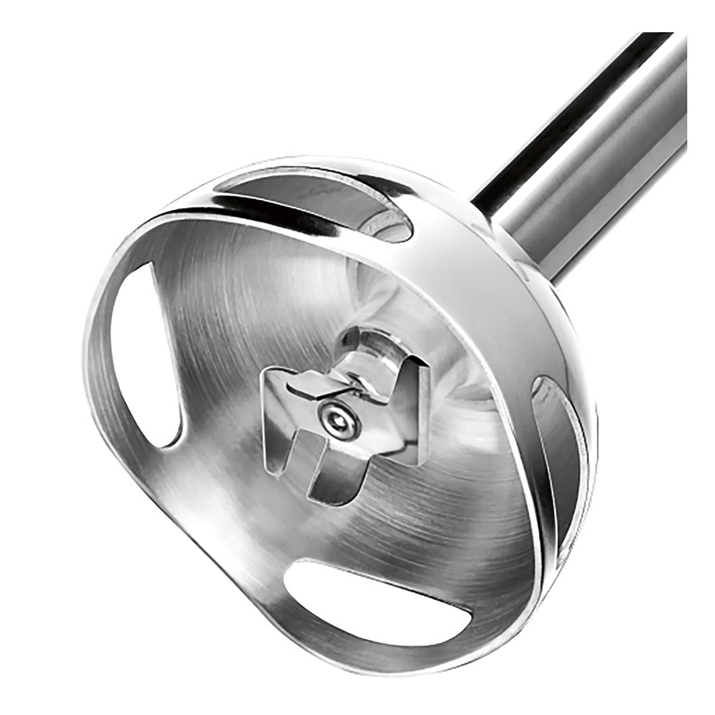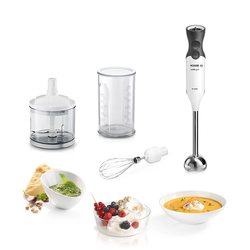 گوشت کوب برقی بوش مدل BOSCH MS6CA4150، با توان مصرفی 800 وات و توانایی انجام چند عملکرد، یک گزینه مناسب برای آشپزخانه شما خواهد بود. موتور قدرتمند این دستگاه با عملکردی پرسرعت و در عین حال کم صدا و کم لرزش آماده است تا فرایند له و مخلوط کردن مواد غذایی مدنظر شما را با حداکثر توان و برای دستیابی به بهترین نتایج به انجام برساند. تنظیمات سرعت این گوشت کوب در 12 درجه قابل کنترل بوده که به انضمام دکمه مربوط به عملکرد Turbo بنا بر نوع عملکرد و میزان سرعت مورد نیاز شما به وسیله کنترلر چرخشی تعبیه شده در قسمت رویی دسته گوشت کوب اعمال میشود. بهرهگیری از تیغه 4 لبه موسوم به QuattroBlade موجب ایجاد حداکثر قدرت برش و مخلوط کردن انواع مواد غذایی حتی مواد غذایی با قطع بزرگ شده است. همچنین با وجود قابلیت AntiSplash از پاشیدن مواد غذایی به خارج از فضای لیوان در حین انجام فرایند و کثیف شدن آشپزخانه جلوگیری خواهد شد. لیوان دربدار مدرج این گوشت کوب دارای ظرفیت 600 میلیلیتر بوده که نگهداری مواد غذایی له و مخلوط شده در داخل همین لیوان درون یخچال امکان پذیر بوده و احتیاج به انتقال به ظرف دیگر نخواهید داشت. اما عملکردهای دستگاه به این مورد ختم نمیشود؛ وجود یک همزن بالونی با قابلیت جایگزینی با پایه گوشت کوب برقی برای هم زدن و ورز آوردن انواع مواد غذایی و همچنین یک خردکن کوچک با قابلیت خرد کردن انواع مواد غذایی دیگر امکانات این دستگاه به شمار میآیند. دسته ارگونومیک و سبک این دستگاه لذت تجربه یک استفاده آسان و بدون ایجاد خستگی را در اختیار شما قرار خواهد داد. با قابلیت تفکیک پایه گوشت کوب به راحتی و تنها با فشردن یک دکمه، با توجه به جنس استیل ضدزنگ این قسمت از گوشت کوب برقی بوش مدل BOSCH MS6CA4150، امکان شستشوی آن را زیر آب و یا در ماشین ظرفشویی خواهید داشت.