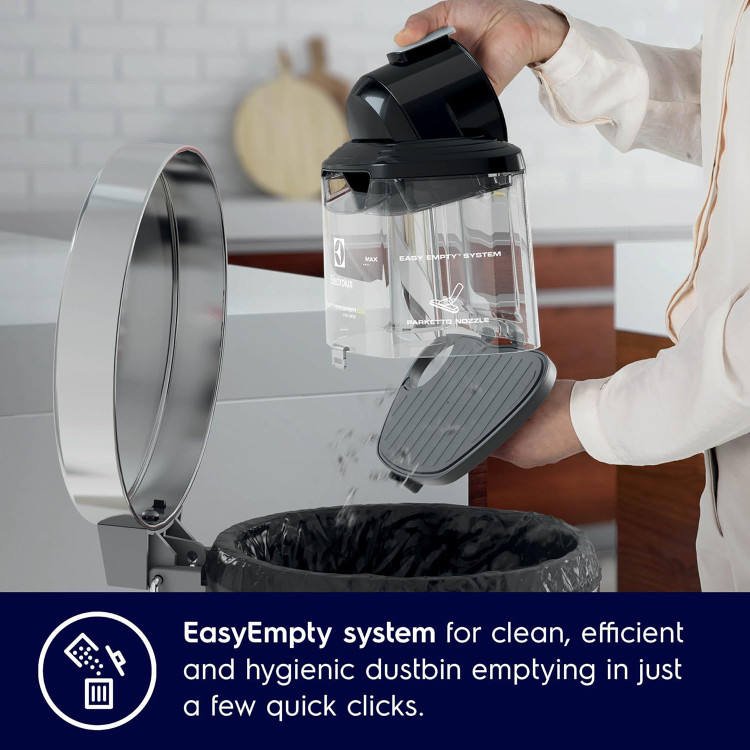 سیستم Easy Empty™: تخلیه ظرف گرد و غبار سریع و بهداشتی است. به سادگی ظرف را بردارید و گرد و غبار را بیرون بریزید.