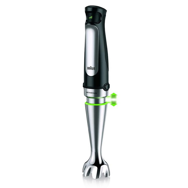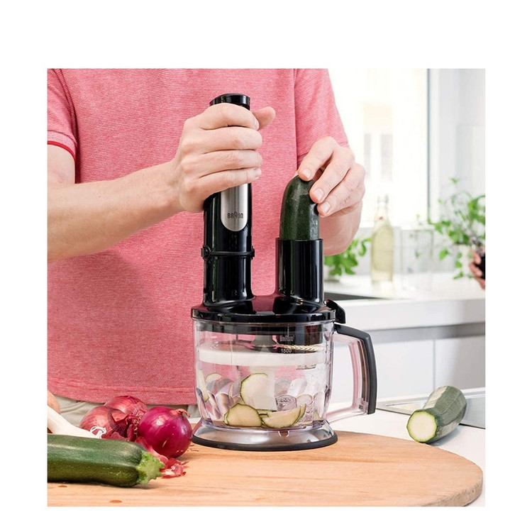 گوشت کوب برقی براون مدل BRAUN MQ7087X با توان مصرفی 1000 وات و بهرهگیری از تکنولوژیهای حرفهای و مدرن و به روز و عملکردهایی متنوع، یک گزینه ویژه برای تکمیل آشپزخانه شماست. تعبیه موتوری قدرتمند و در عین حال کم صدا و همچنین با میزان لرزش پایین امتیازی ارزشمند برای این دستگاه محسوب میشود. تنظیمات سرعت این گوشت کوب برقی به طور هوشمند با اعمال فشار برروی دکمه SmartSpeed قابل کنترل بوده که بسته به مقدار فشار انگشت شما نسبت به نوع عملکرد و میزان سرعت مورد نیاز فرایند، به آسانی صورت میپذیرد. برخورداری گوشت کوب برقی MQ7087X براون از تیغهای از جنس استیل ضدزنگ تحت سیستم POWERBell PLUS، این دستگاه را قادر میسازد تا در عرض چند ثانیه، حجم قابل توجهی از مواد غذایی را له و مخلوط کند. علاوه بر این با برخورداری از تکنولوژی ACTIVEBlade با وجود انعطاف در حرکت تیغهها، سخت ترین مواد غذایی با صرف 40% انرژی کمتر مخلوط و له خواهد شد. همچنین به لطف بهرهگیری از سیستم SplashControl دستگاه از پاشیدن مواد غذایی در حین انجام فرایند جلوگیری خواهد کرد. وجود اقلام جانبی متنوع موجب ایجاد گستره میزان عملکردهای دستگاه شده است؛ در کنار گوشت کوب و لیوانی مدرج مخصوص انجام فرایند با ظرفیت 600 میلیلیتر و فاقد ماده مضر BPA، تعبیه یک همزن بالونی از جنس استیل ضدزنگ برای مخلوط کردن مواد غذایی و ورز دادن خمیر، قطعه پورهساز برای تهیه انواع پوره، مخلوطکن کوچک 350 میلیلیتری با تیغههایی استیل برای خرد کردن مواد غذایی چون انواع پنیر، آجیل وسبزیجات و غذاساز بزرگ 1.5 لیتری با بهرهگیری از دو قطعه رنده با 4 دیسک و 2 عدد تیغه مجزا با قابلیت ایجاد برش در قطعهای متفاوت، رنده کردن، مخلوط کردن انواع نوشیدنی و مواد غذایی از جمله سوپ و غذای کودک و همچنین خرد کردن یخ، موجب شده تا امکان انجام چندین فرایند را تنها با خرید یک دستگاه داشته باشید. جداسازی و جایگزینی سریع و آسان سری قطعات به لطف وجود قابلیت EasyClick به آسانی و با فشردن یک دکمه صورت میگیرد. طراحی ارگونومیک دسته گوشت کوب برقی MQ7087X براون تجربهای آسان و لذت بخش را در حین استفاده از دستگاه در اختیار شما قرار میدهد. امکان شستشوی قطعات گوشت کوب برقی براون مدل BRAUN MQ7087X در ماشین ظرفشویی و قفل ایمنی جهت چفت شدن قطعه بر روی دسته، دیگر ویژگیهای مهم این محصول به شمار میآید.