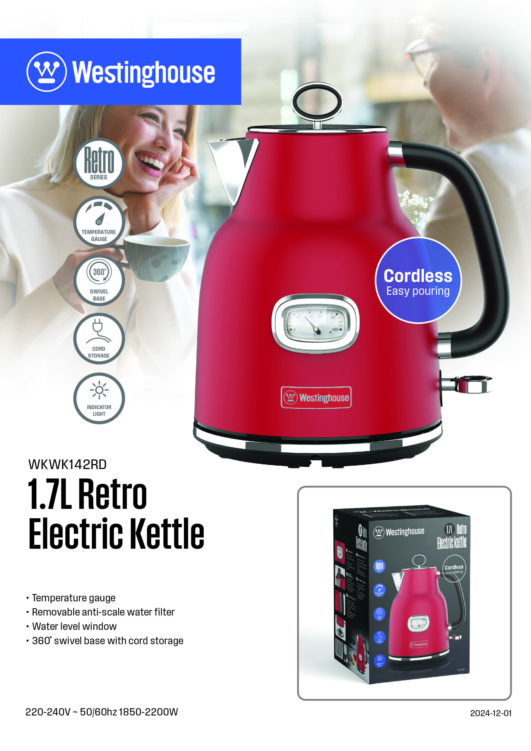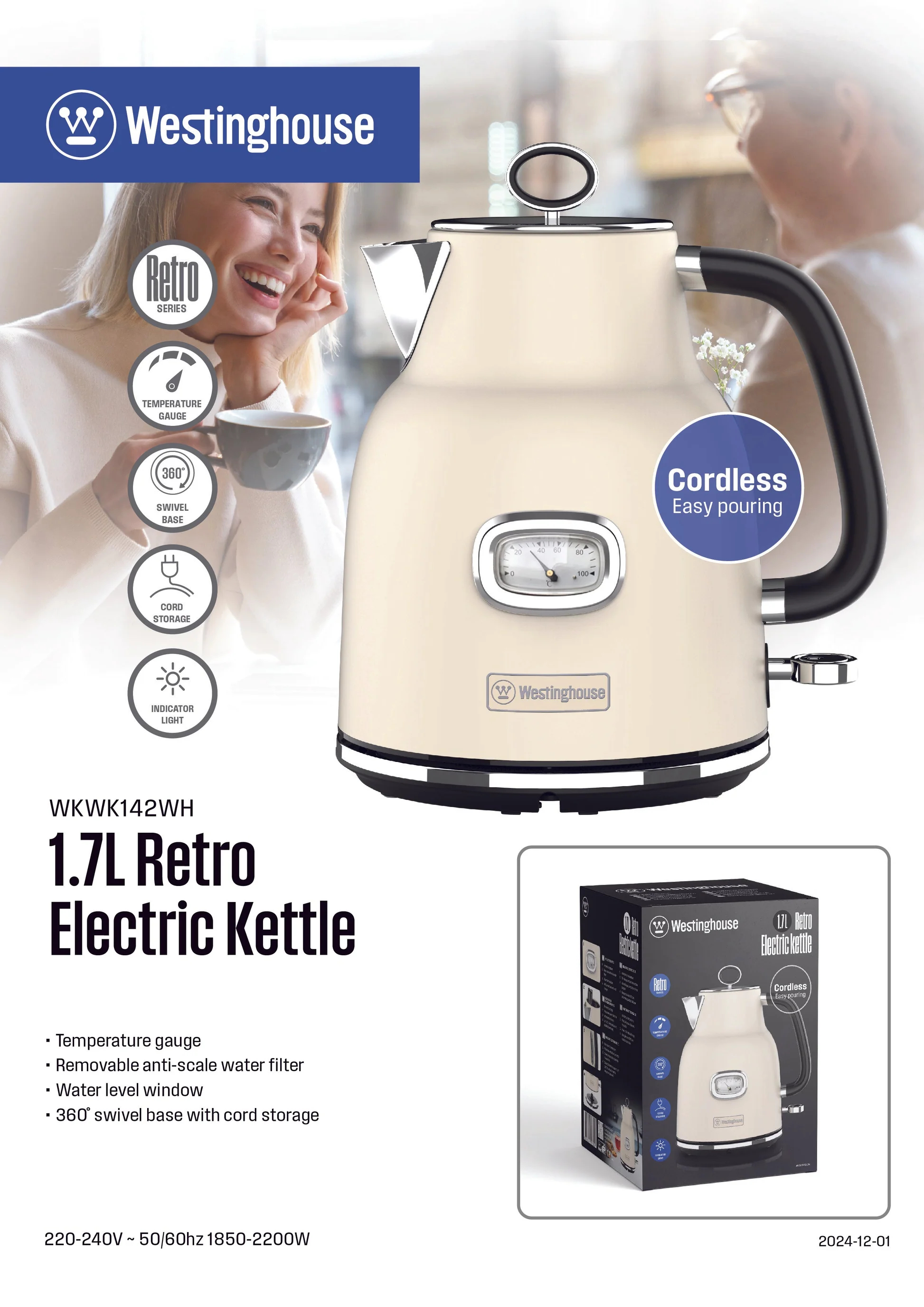 با کتری برقی رترو وستینگهاوس آب را سریع و شیک بجوشانید. این کتری طراحی یکپارچهسازی با سیستمعامل جذاب را با ویژگی های مدرن ترکیب می کند تا تهیه چای یا قهوه شما را نسیمی کند.