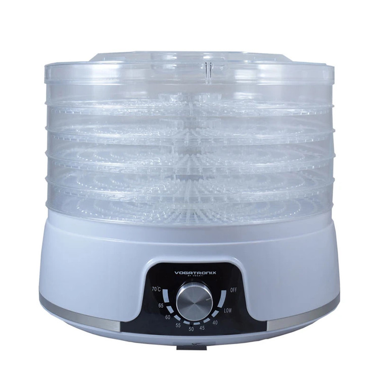 خشک کن وگاترونیکس مدل VE 170 دارای 250 وات قدرت و 5 طبقه سینی بوده و توانایی خشک کردن مقدار مناسب میوه و سبزیجات به صورت همزمان است.