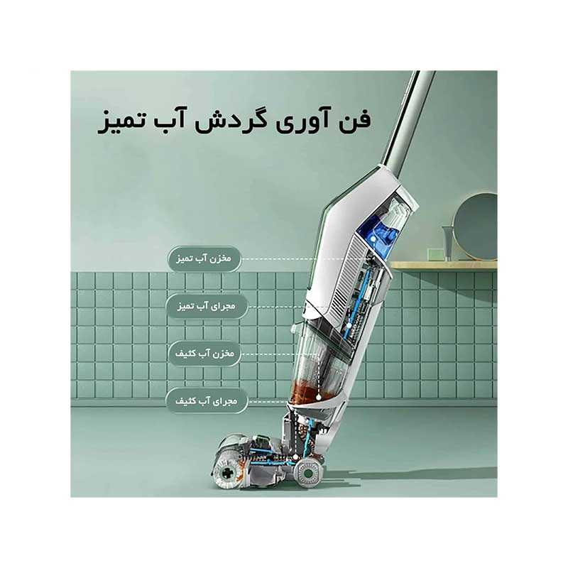 مزیت اصلی این ابزار نظافت باکیفیت که خرید آن را بسیار مقرون به صرفه میکند امکان انجام همزمان فرایند جاروکشی و شستشوی سطح در یک زمان است. در حقیقت وجود این ویژگی این محصول را در بین کاربران جذاب کرده است چراکه با خرید یک محصول دو نیاز بسیار مهم را برای نظافت محیط خانه خود به راحتی و به بهترین شکل برطرف میکنند. دستگاه را روی پارکت یا سرامیک حرکت دهید، خواهید دید که تمامی بقایای آلودگی اعم از زبالههای خشک و تر را در کسری از زمان از روی سطح موردنظر تمیز میکند.