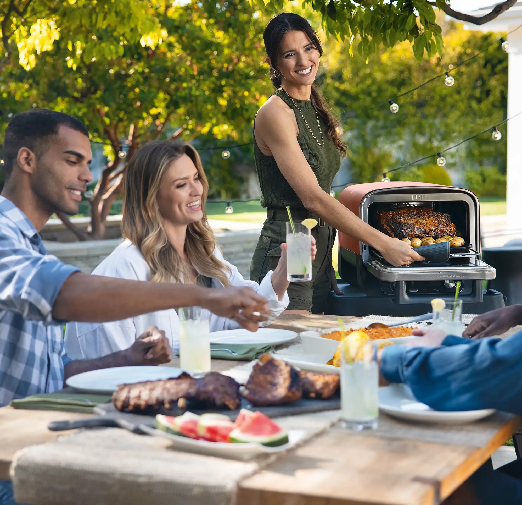 پخت و پز کارآمد در فضای باز: گرمای الکتریکی کار شما را آسان تر می کند. فقط بنشینید و از آشپزی خود لذت ببرید. ساخته شده به گونه ای که در برابر آب و هوا مقاوم باشد، می توانید در فضای باز نگهداری کنید، اما توصیه می کنیم از پوشش فر بیرونی Ninja استفاده کنید تا فر خود را در برابر عوامل محیطی ایمن نگه دارید.