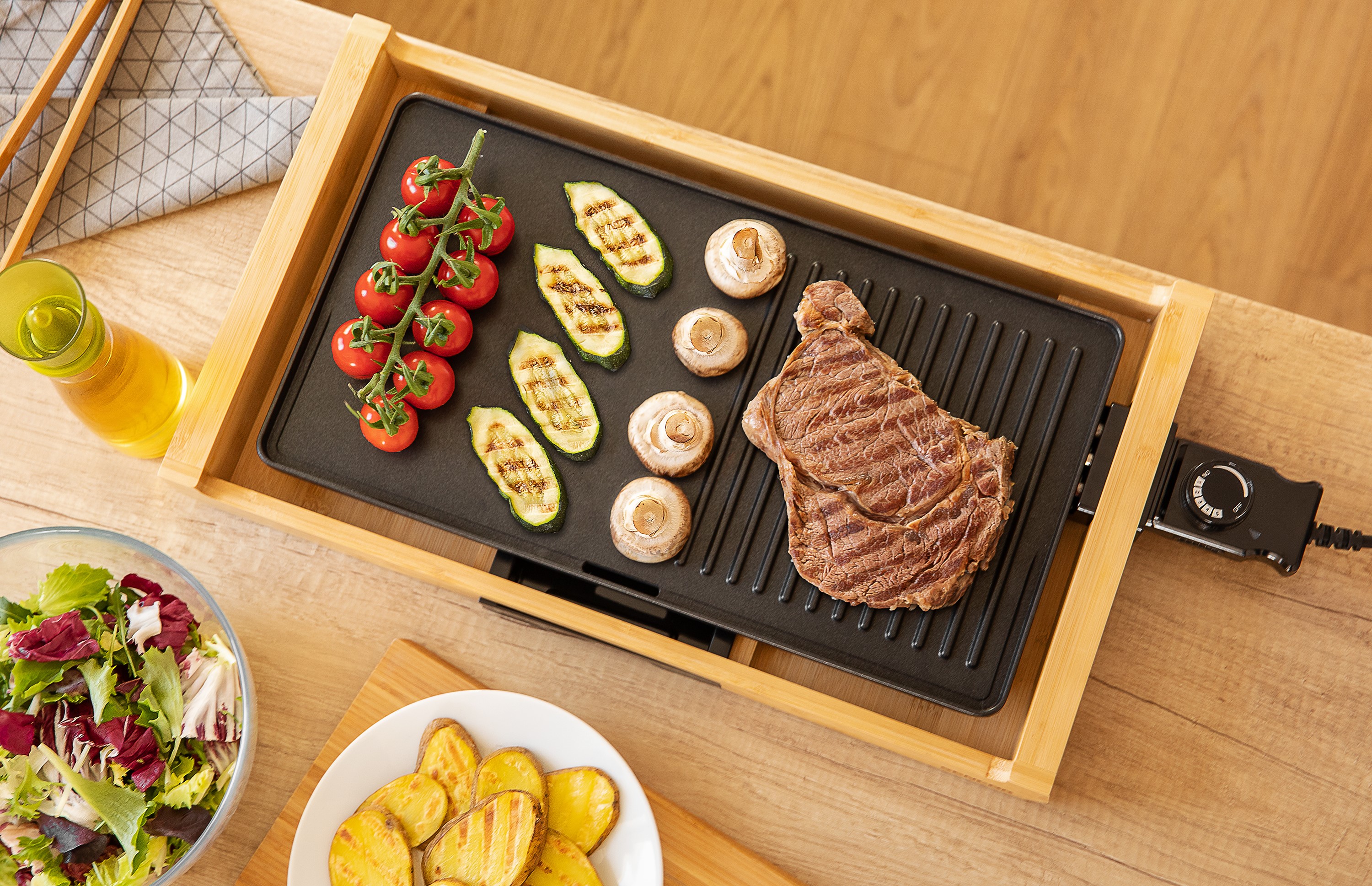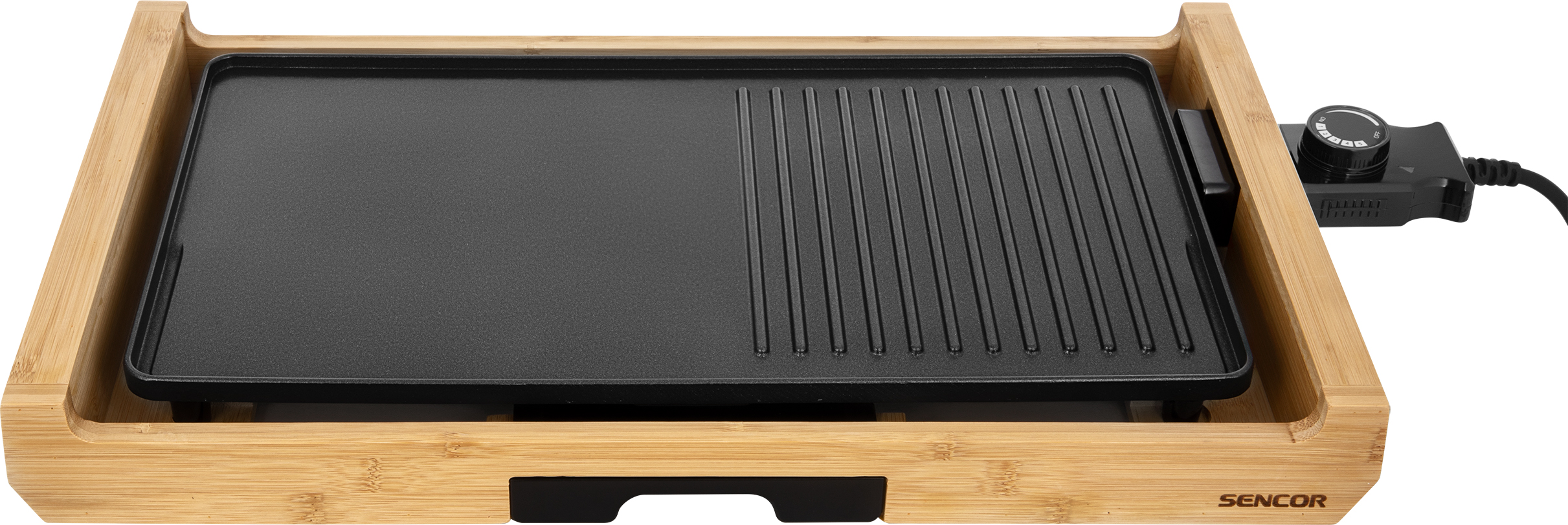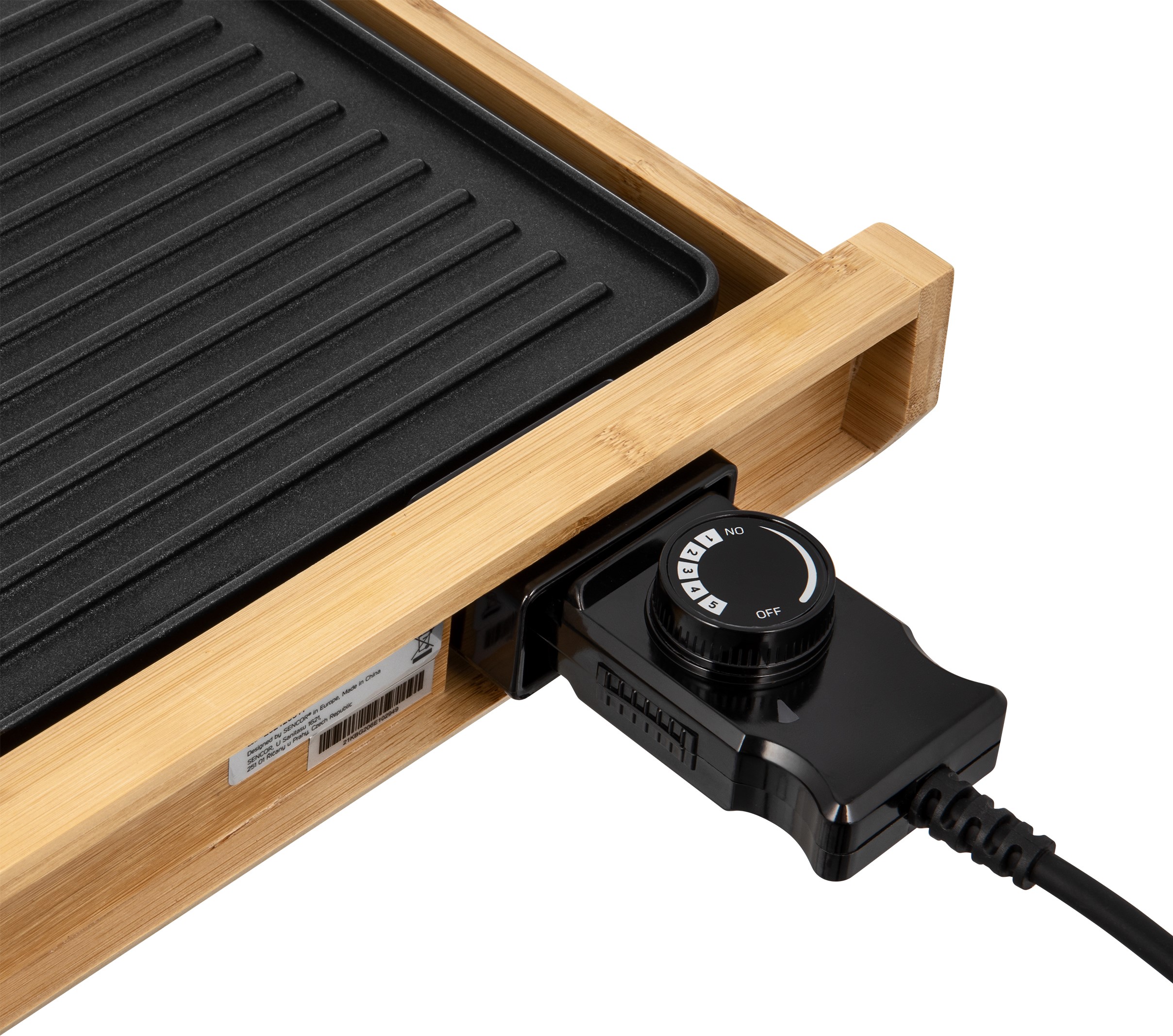 جنس صفحات این دستگاه از روکش نچسب و به صورت شیار دار میباشد که حرارت را به صورت کامل به مواد غذایی منتقل میکند .گریل SBG 206BK بر روی پنل خود دارای ولوم تنظیم حرارت میباشد و در 5 درجه قابل تنظیم است.