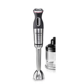 از کاربری محصول لذت کامل را خواهید برد. برخورداری از متریال استیل ضدزنگ در ساخت پایه گوشت کوب دو مزیت را دارد. اول اینکه موجب ایجاد زیبایی در ساخت محصول شده است و ویژگی دیگر در آسودگی در دست گرفتن گوشت کوب است. در بخش بالایی پایه از روکش لاستیکی مقاوم در برابر لغزش استفاده شده تا در مواقع استفاده، دستگاه با آسودگی کامل در دستان شما قرار گرفته و ایمنی انجام فرایند حتی در حین فرایندهایی با سرعت بالا نیز حفظ شود. تعبیه دکمههای بزرگ جهت عملکردهایی نظیر روشن کردن دستگاه، عملکرد توربو و همچنین جداسازی قطعه موردنظر از بخش پایه، موجب ایجاد کاربری آسوده و ارگونومیک دستگاه شده است. گفتنی است در وزن سبک این محصول قرارگیری آن در دست را به راحتترین شکل ممکن امکانپذیر میکند.