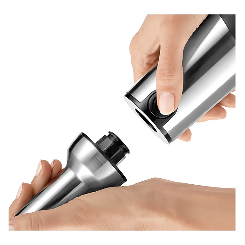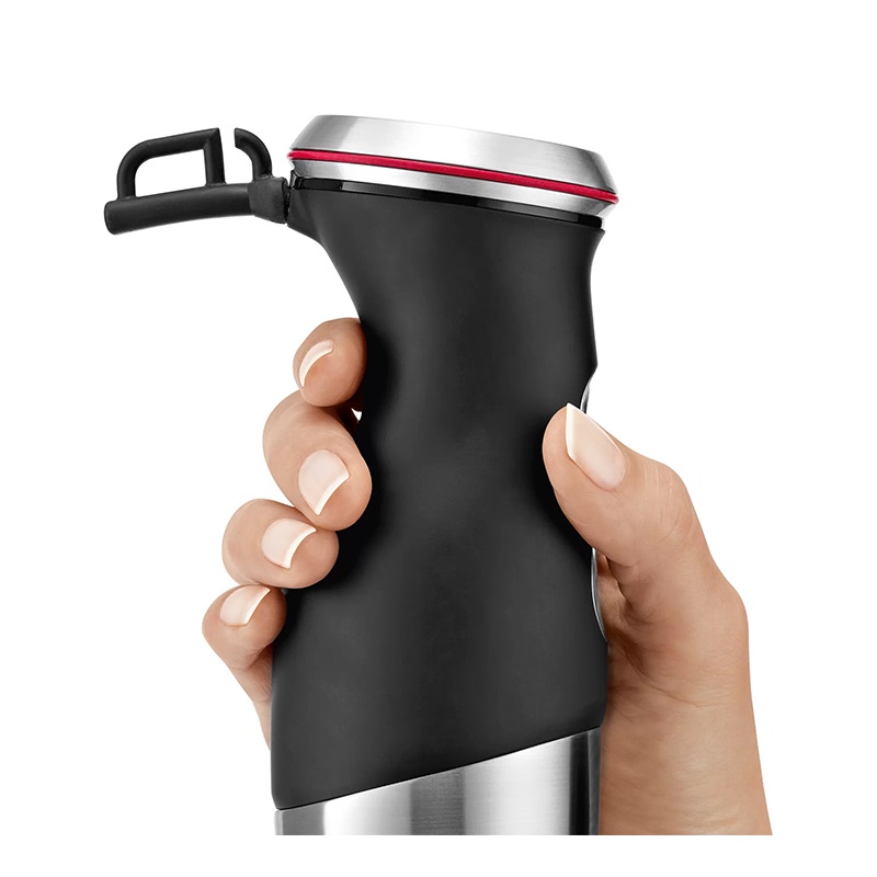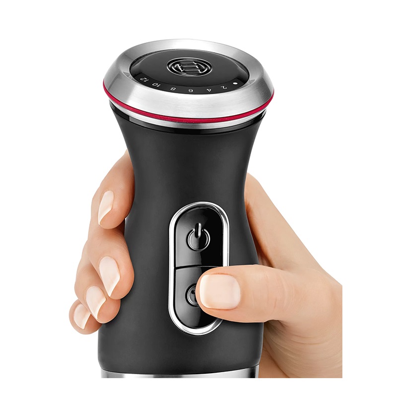 از کاربری محصول لذت کامل را خواهید برد. برخورداری از متریال استیل ضدزنگ در ساخت پایه گوشت کوب دو مزیت را دارد. اول اینکه موجب ایجاد زیبایی در ساخت محصول شده است و ویژگی دیگر در آسودگی در دست گرفتن گوشت کوب است. در بخش بالایی پایه از روکش لاستیکی مقاوم در برابر لغزش استفاده شده تا در مواقع استفاده، دستگاه با آسودگی کامل در دستان شما قرار گرفته و ایمنی انجام فرایند حتی در حین فرایندهایی با سرعت بالا نیز حفظ شود. تعبیه دکمههای بزرگ جهت عملکردهایی نظیر روشن کردن دستگاه، عملکرد توربو و همچنین جداسازی قطعه موردنظر از بخش پایه، موجب ایجاد کاربری آسوده و ارگونومیک دستگاه شده است. گفتنی است در وزن سبک این محصول قرارگیری آن در دست را به راحتترین شکل ممکن امکانپذیر میکند.