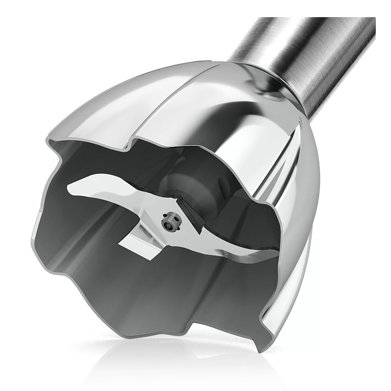 ترکیب کردن و کوبیدن مواد غذایی هیچگاه به این آسانی نبوده است. طراحی شکل سری گوشت کوب بهصورت آجدار در کنار برخورداری از تیغههای منحصربهفرد موجب افزایش هرچه بیشتر بهرهوری دستگاه شده است. طبق این مکانیزم برای ایجاد برش کامل و دقیق، مواد غذایی مستقیما با تیغه 4 لبه موسوم به QuattroBlade Pro درگیر میشود تا با ایجاد فشار مناسب، ترکیب موردنظر شما ایجاد شود. جنس این تیغههای تیز و دارای تکنولوژی مدرن از استیل ضدزنگ است. این متریال ساخت سبب شده علاوه بر ایجاد برش قوی، تیغهها دارای طول عمر بالا برای استفاده طولانی مدت از گوشت کوب باشد.