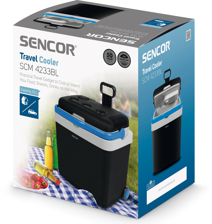 یخچال ماشین سنکور مدل SCM 4233BL با طراحی مدرن، ظرفیت 33 لیتر، دسته محکم جمع شونده، چرخ های بزرگ برای حمل آسان و دو حالت سرد کردن و گرم کردن یک انتخاب ایده آل برای آسودگی خاطر شما از نگهداری مواد غذایی برای زمان هایی که شما به مسافرت می روید، چند روزی ماهیگیری می کنید، اردو می زنید یا در پیک نیک هستید. با حجم 33 لیتری این یخچال کاربردی شما می توانید 9 بطری 1.5 لیتری یا پنج بطری 2 لیتری را به راحتی ذخیره کنید و درب آن را به راحتی ببندید. سیستم تهویه با موتور براشلس با عمر طولانی از ویژگی های این محصول با کیفیت است.