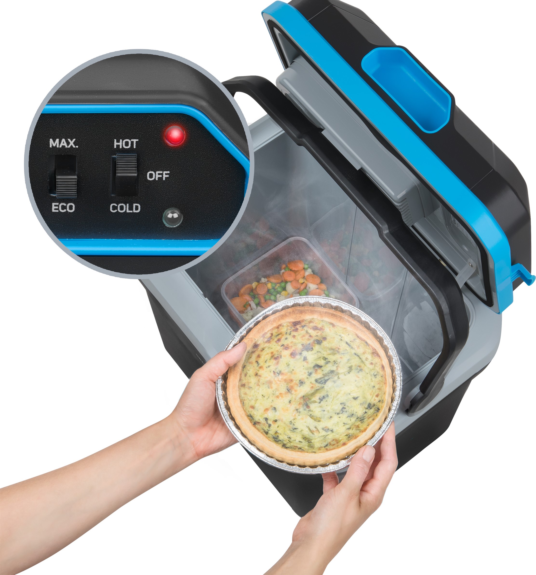 خنک کننده برای هر کولر ماشینی یک امر مسلم است، برای من تا 18 درجه سانتی گراد زیر دمای محیط است. با این حال، هر کولر خودرویی دارای عملکرد گرمایشی نیست . یخچال ماشین سنکور مدل SCM 2224BL این مزیت را دارد که می تواند گرمایش با کیفیت تا 60 درجه سانتی گراد ارائه دهد . می توان غذا را در دمای دلخواه نگه داشت یا در زمان نسبتا خوبی آن را گرم کرد. سرمایش و گرمایش موثر بدون عایق با کیفیتی که از خروج هوای سرد و گرم از دیوارها محافظت می کند، امکان پذیر نیست. به طور خلاصه، تعامل کاملی که همیشه تحت نظارت خود با نورپردازی LED رنگارنگ خواهید داشت.
