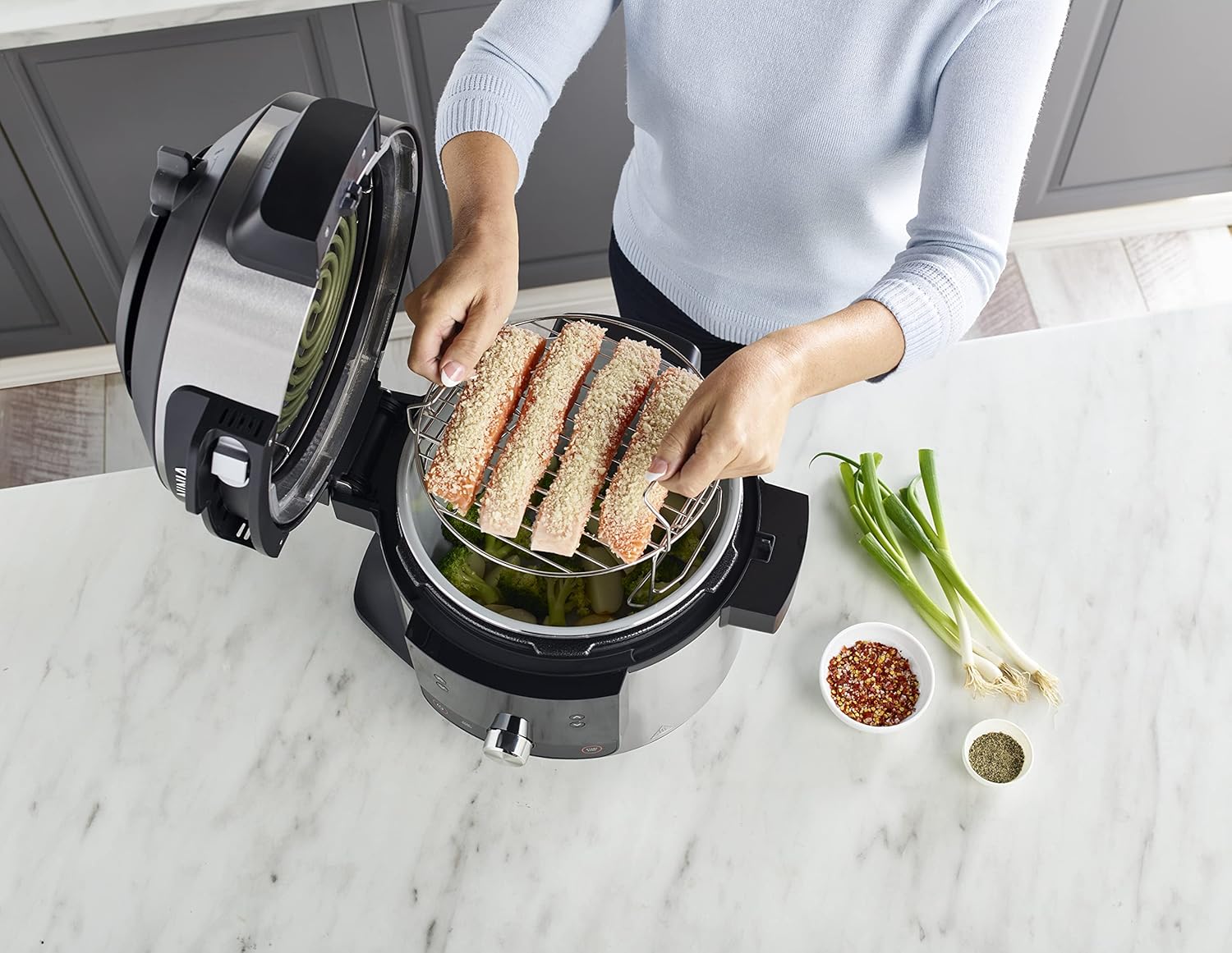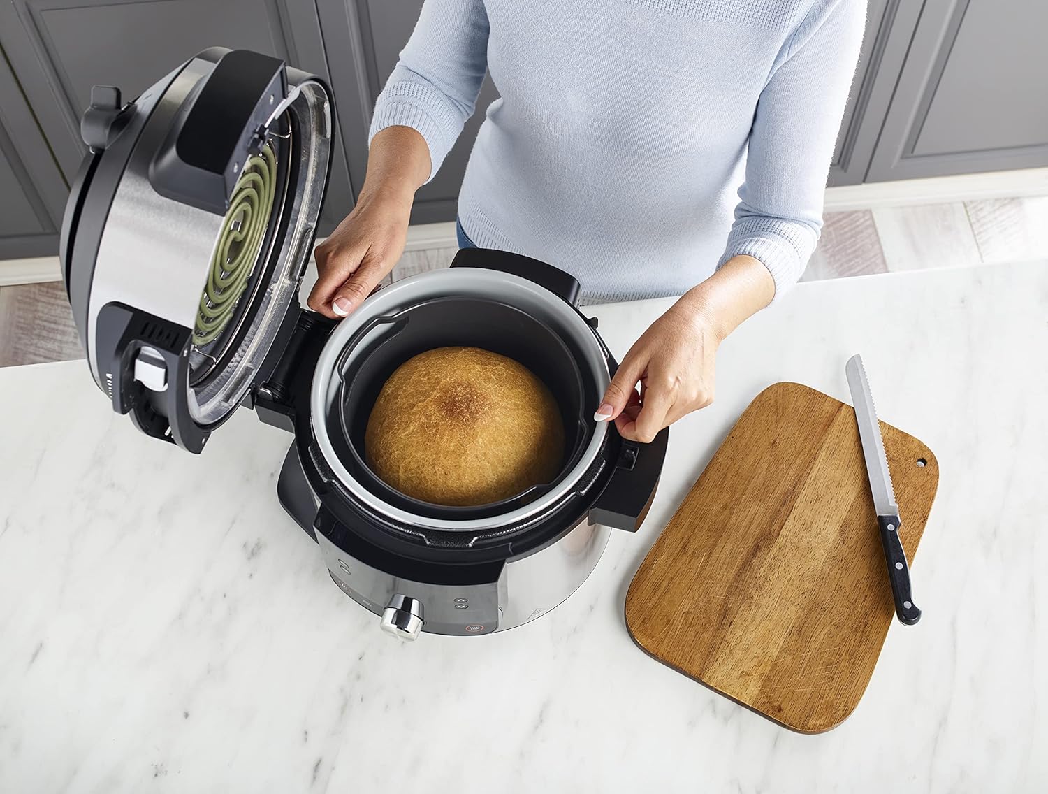 کاسه ۷.۵ لیتری این مولتی کوکر نینجا ظرفیتی ایدهآل را برای تهیه وعده غذایی ۴ نفره در اختیار شما قرار میدهد. این ظرفیت معادل پخت یک مرغ بزرگ ۲.۵ کیلوگرمی است. علاوه بر این کاسه دیگر اقلام جانبی دستگاه شامل پایه مخصوص بخارپز کردن مواد غذایی، پایه نگهدارنده سبد سوخاری و سبد مخصوص سوخاری کردن میشود. گفتنی است تمامی اقلام جانبی قابلیت شستشو در ماشین ظرفشویی را دارند.