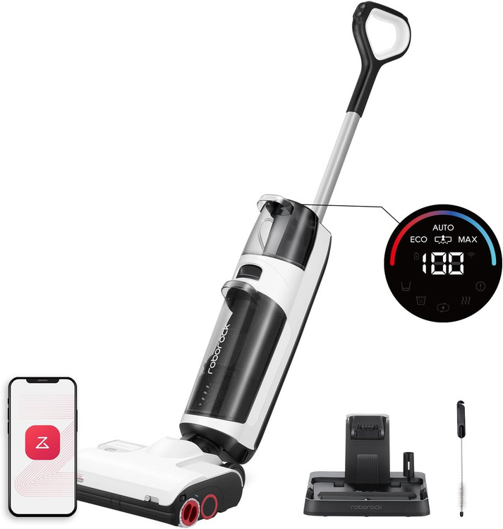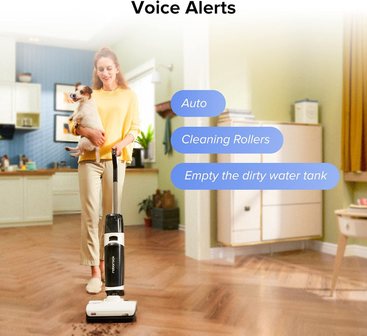 - کنترل هوشمند: Dyad Pro Combo را میتوان از طریق اپلیکیشن Roborock کنترل کرد و تنظیمات مختلفی مانند سطح مکش، حالت تمیز کردن و زمان شستشو را تنظیم کرد. همچنین بهره مندی از اعلان اطلاعات از طریق نمایشگر LED روی دسته جارو و هشدارهای صوتی در مورد وضعیت جارو یکی از ویژگی های جالب این دستگاه است.